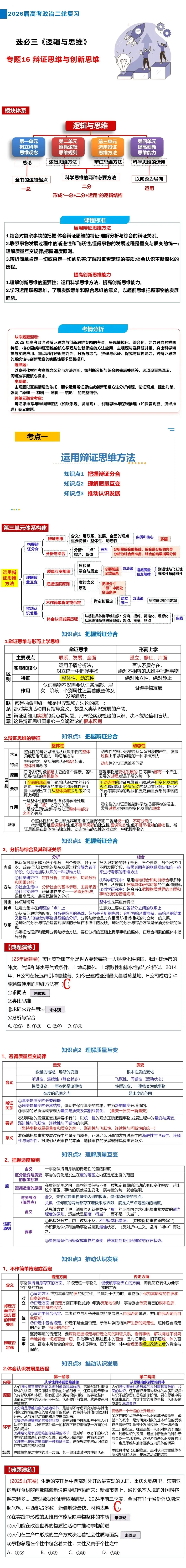 26届高三二轮复习课件——专题16 辩证思维与创新思维