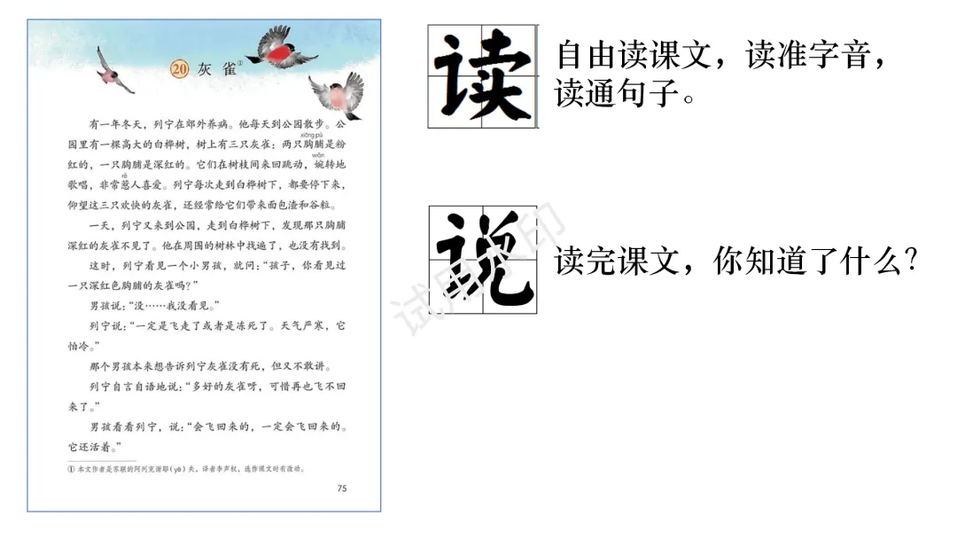 【自制课件】统编三下 第六单元20.《灰雀》