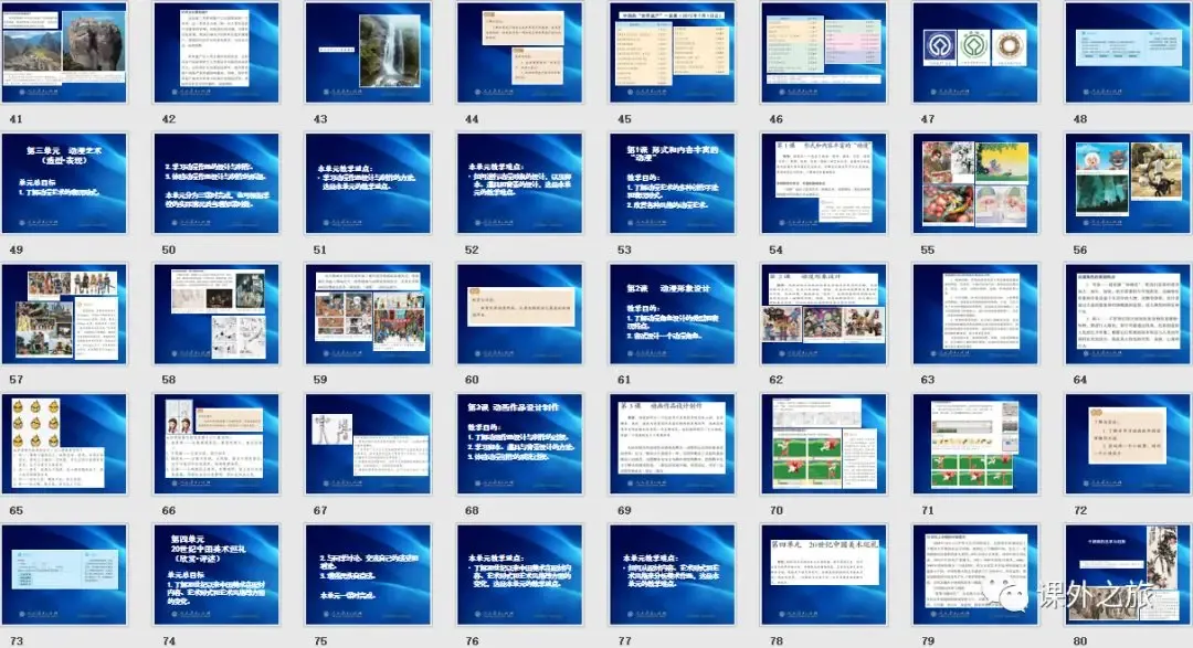 为方便广大教师备课及家长学习,我们紧紧围绕官方统编版教材,从编写理念、指导原则、教材内容的选排等方面,精心整理了初中美术下册课件、教案等备课资料包。现将免费与大家共享。文末可以领取整册资料包!欢迎大家分享+收藏哦~领取完整电子版请拉到文末领取完整电子版请拉到文末点我打印,5分一页,包邮到家!资料包内容 【资料内容展示】1初中美术教学课件展示2初中美术教案展示3初中美术教材分析-资源免费获取方式-👇①扫码添加老师微信👇进群可获取每日最新资源👇②关注课外学苑公众号👇回复关键词【下册美术】👇③分享文章到微信朋友圈👇扫下方二维码保存下载