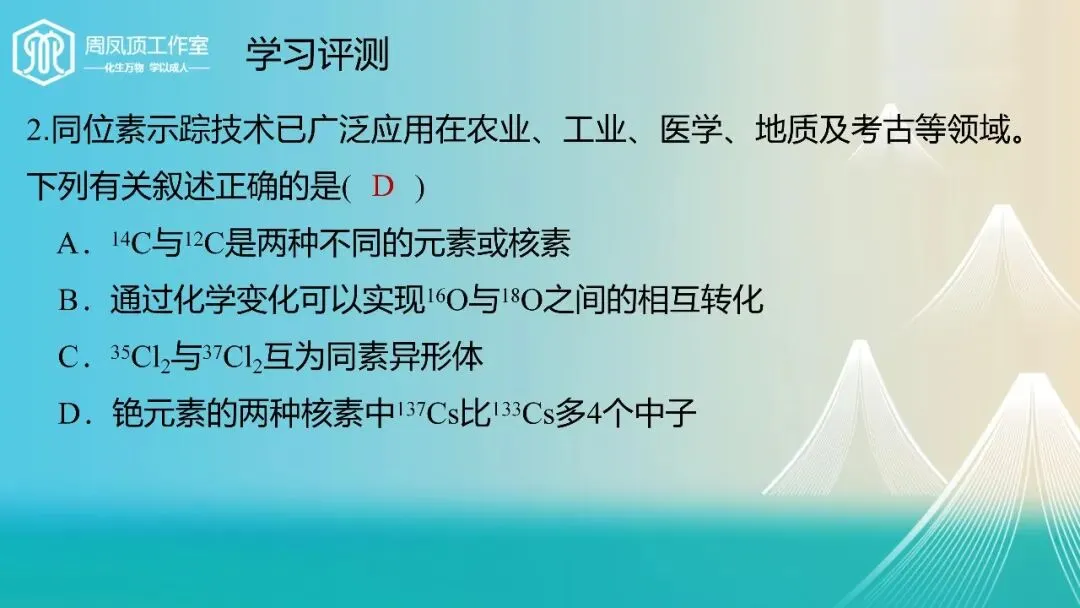 设计亮点:课后评测题不仅考查基础知识,更注重思维迁移,如“如何设计实验证明氧化性”“如何区分同位素标记物”等。