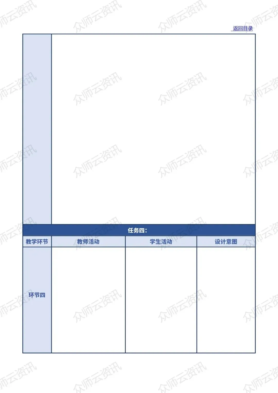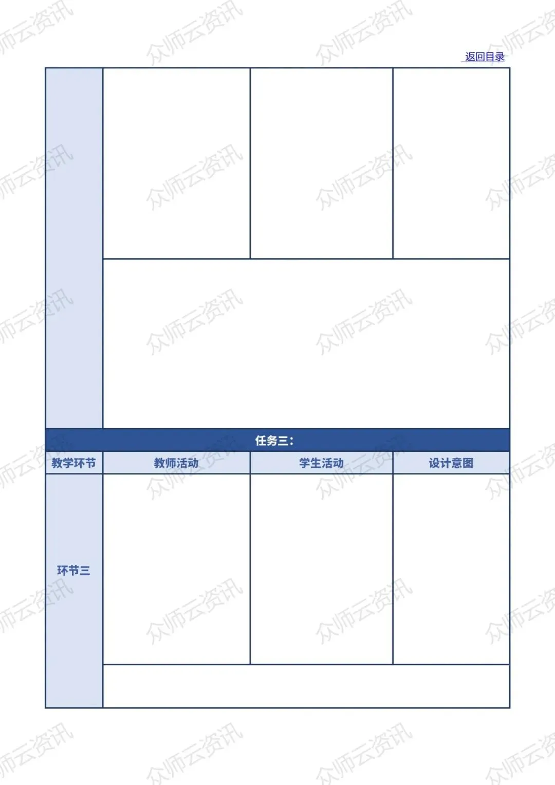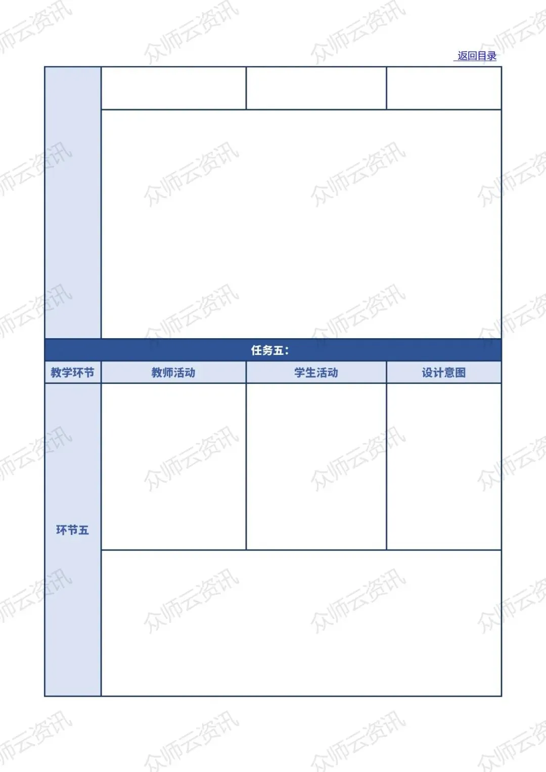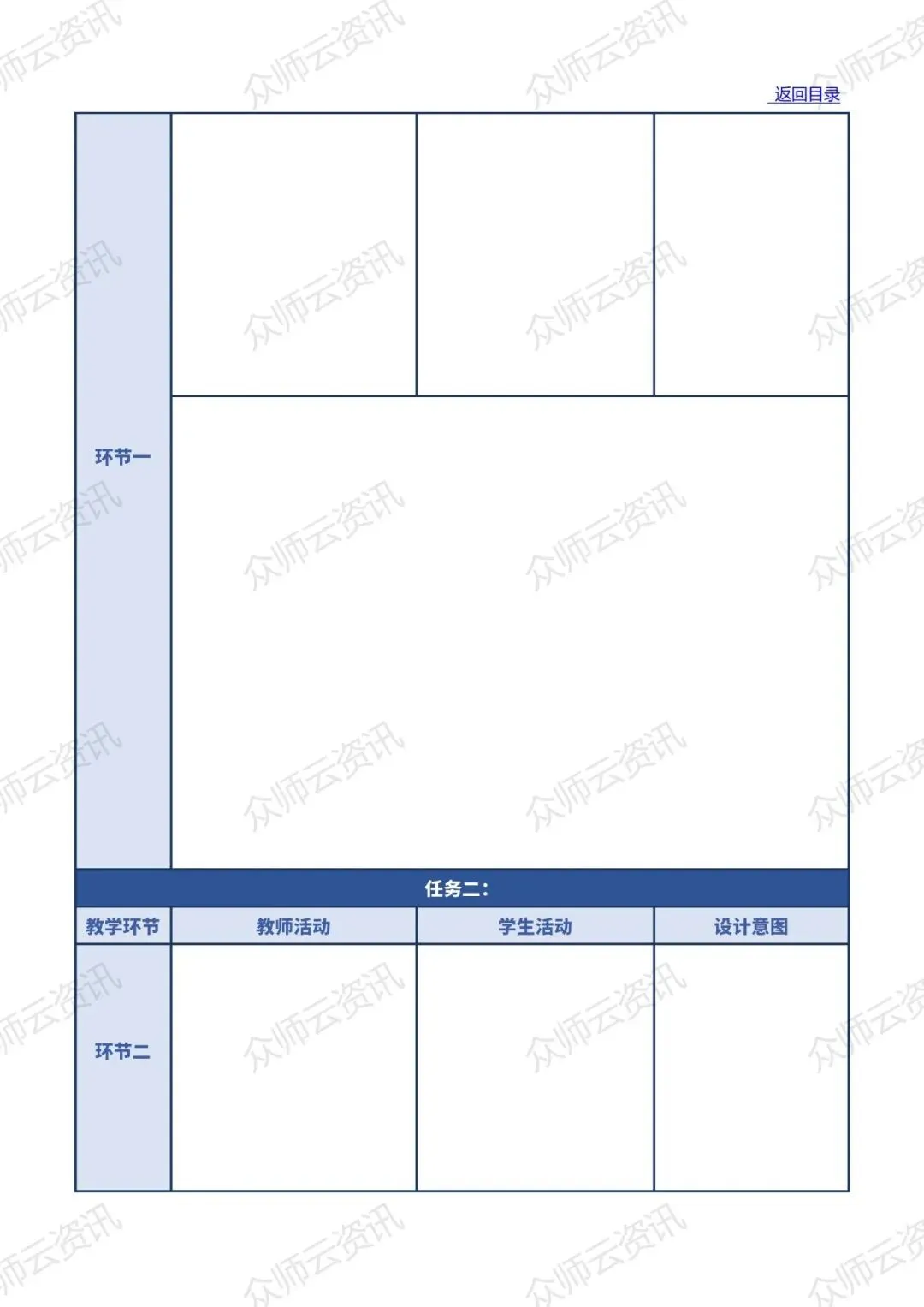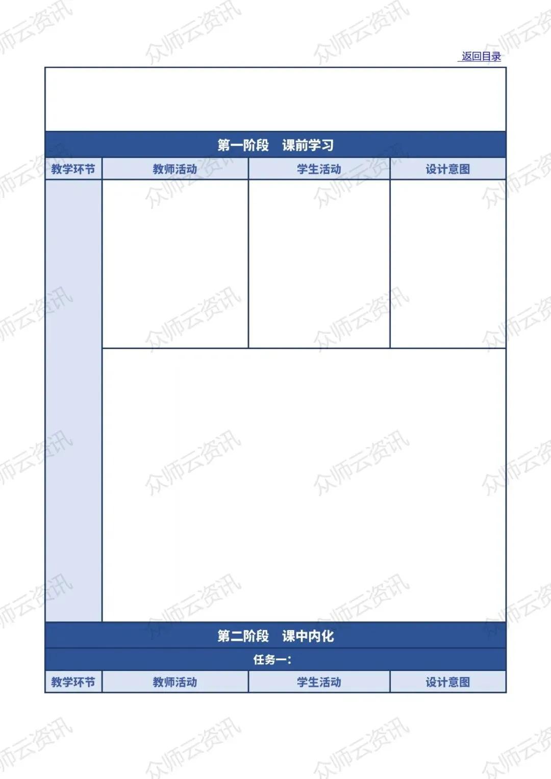 很多老师写完了教案,在合并时,表格排版搞不定,目录设计总不对,返回目录不会做,关键是封面没图片,白底黑字,过于朴素。今天给老师分享一份空白教案,封面、目录、框架、底色、返回,一整套都全部设计好,只需要填写文字进入即可成型一份的参赛材料,助力老师事半功倍。