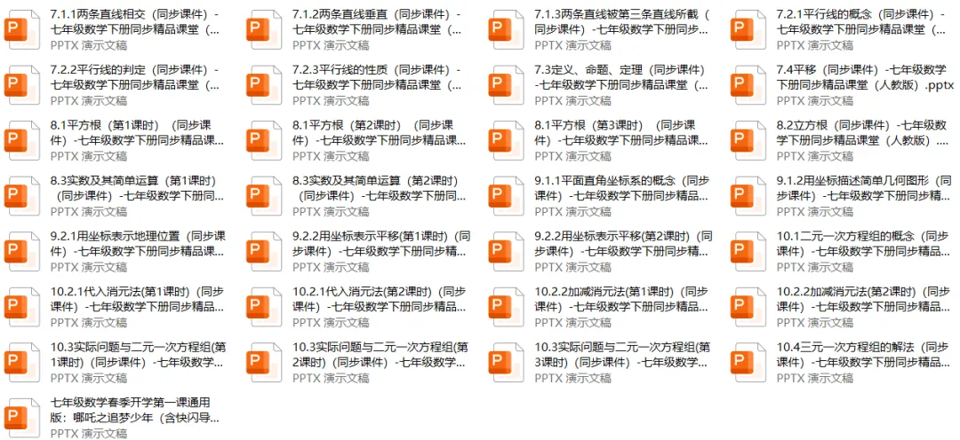 说明:本套课件为七年级数学下册同步课件,目录已经展示给大家,制
