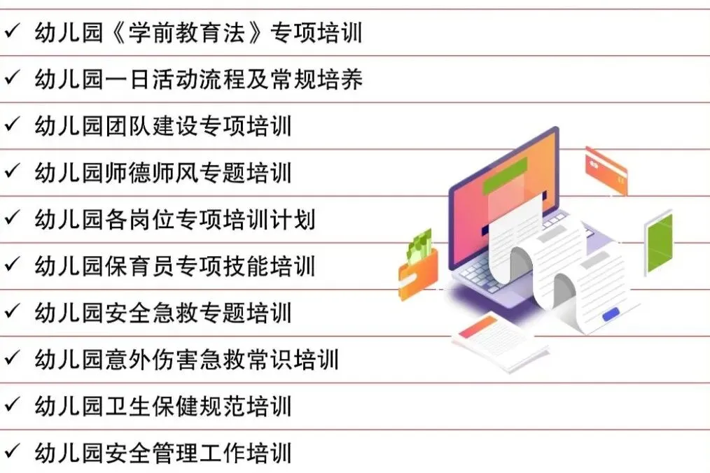 “工欲善其事,必先利其器”。希望这些能够帮助幼儿园做好各岗位培训工作,园所可以根据实际需求,完善幼儿园培训体系,安排培训排期。