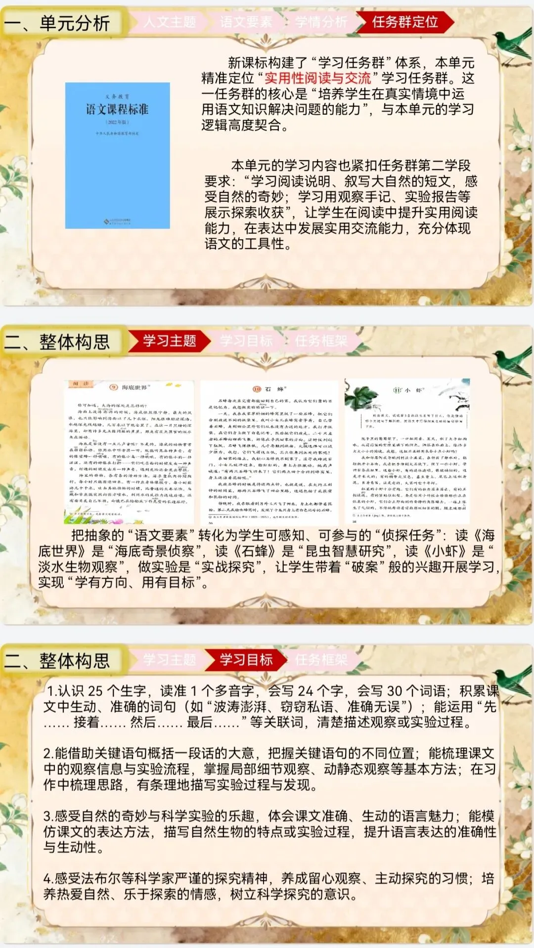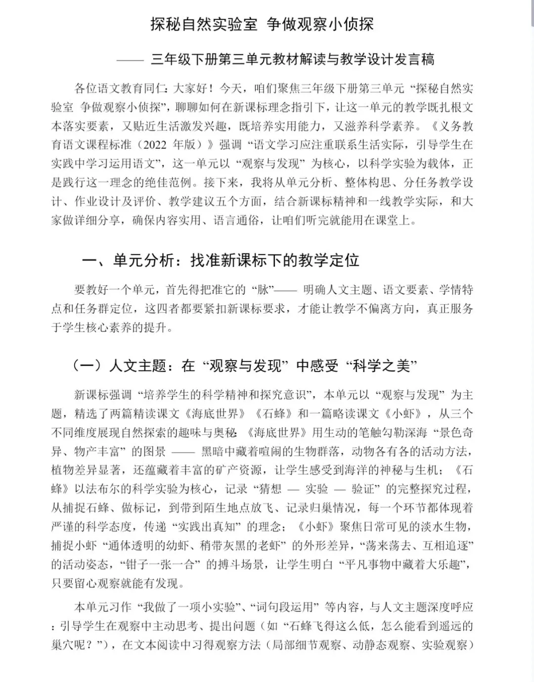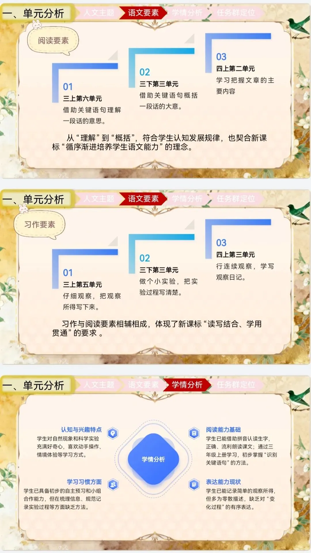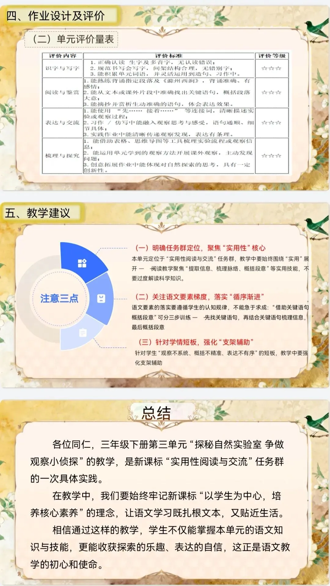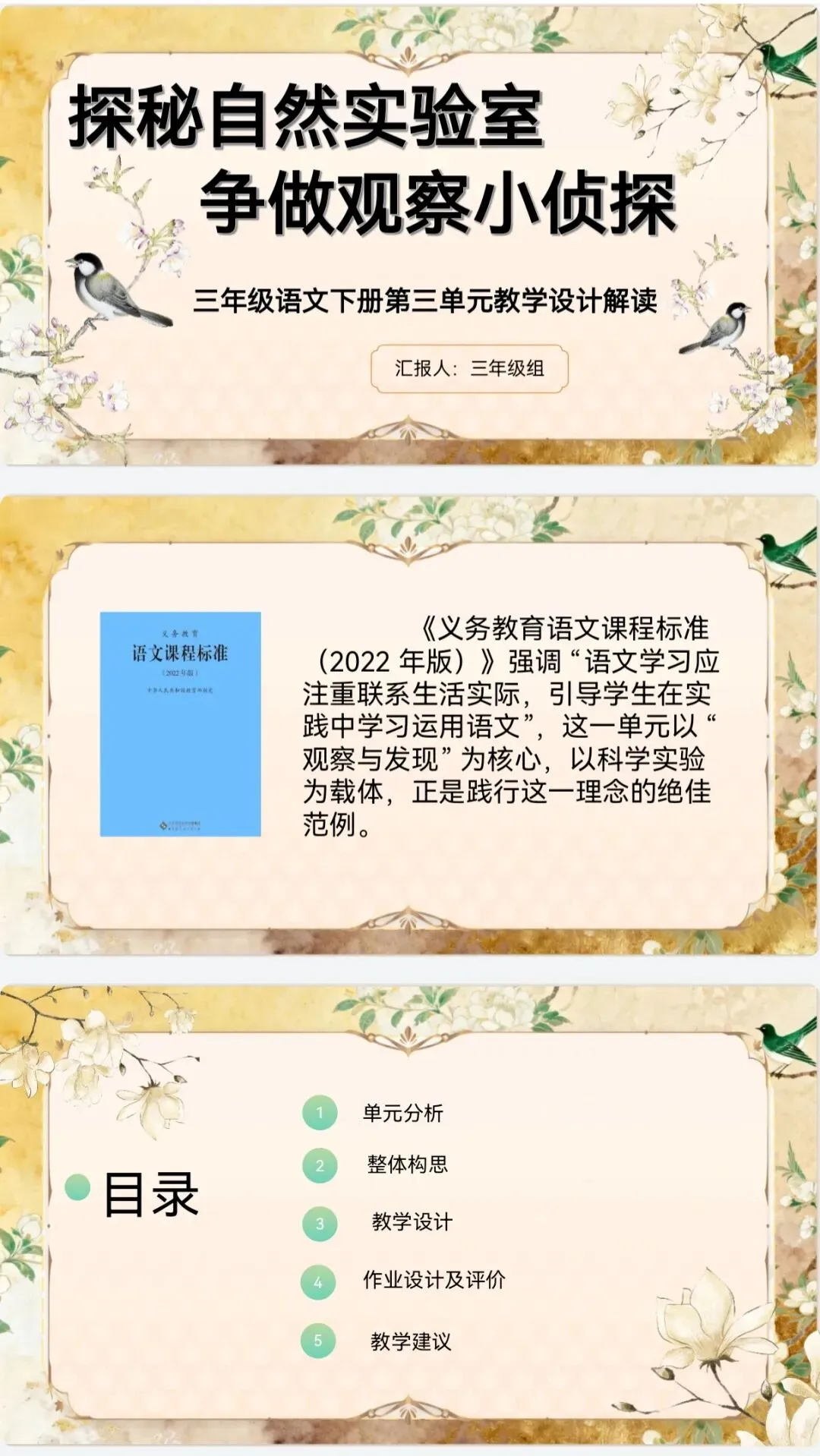>三年级下册第三单元大单元解读课件+发言稿+大单元教学设计