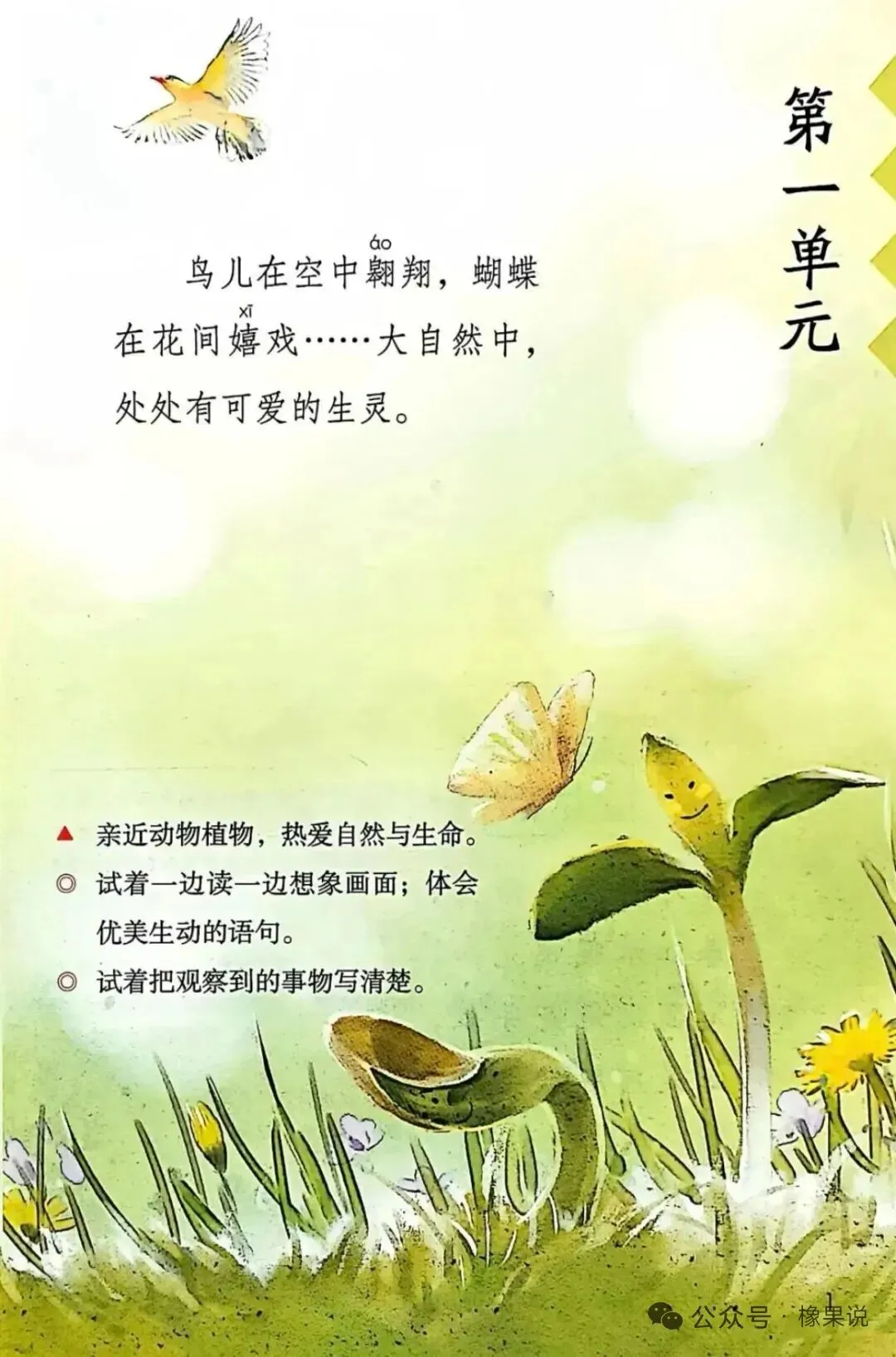 本单元以可爱的生灵为核心,选取3首古诗、3篇现代文,从花鸟、昆虫、春日美景等角度,展现大自然中生命的灵动与美好,激发学生热爱自然、观察自然、珍爱生命的情感。