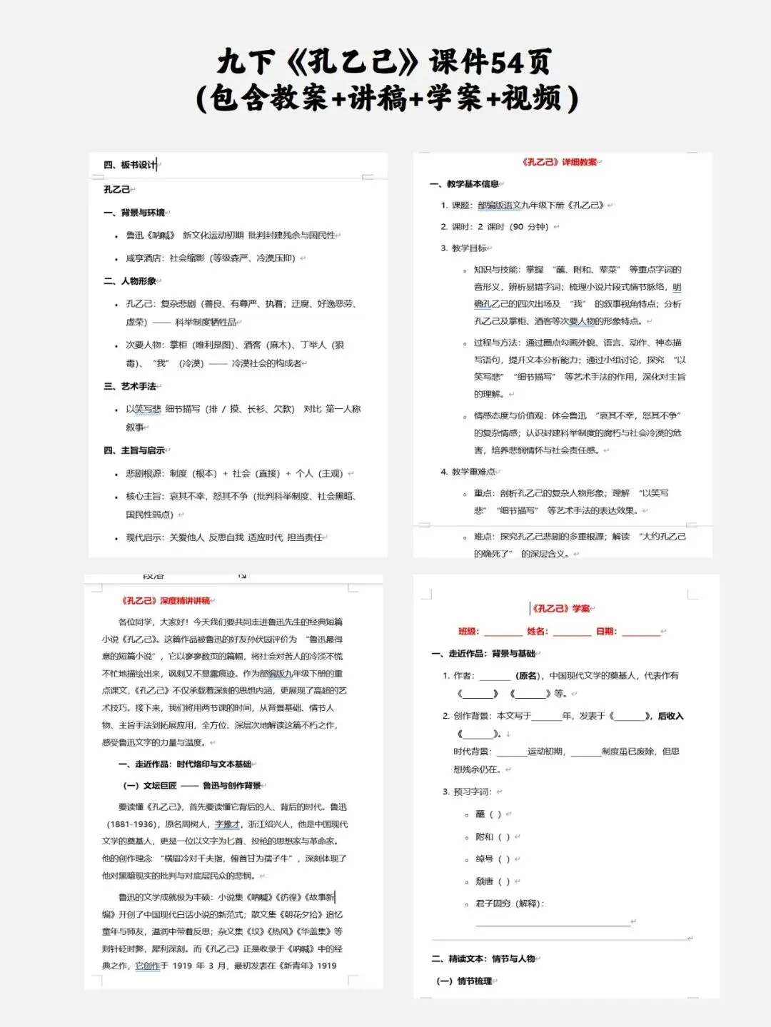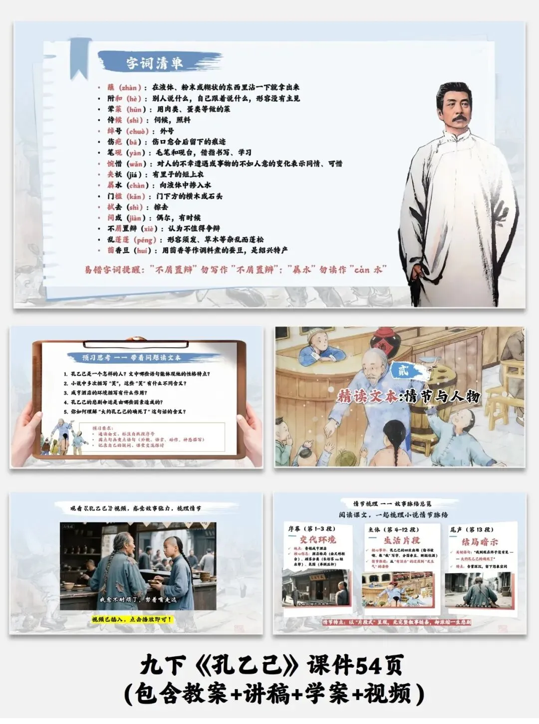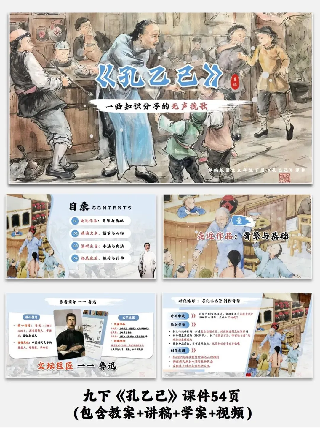 编号【228-0】九下《孔乙己》课件54页(包含教案+讲稿+学案+视频)