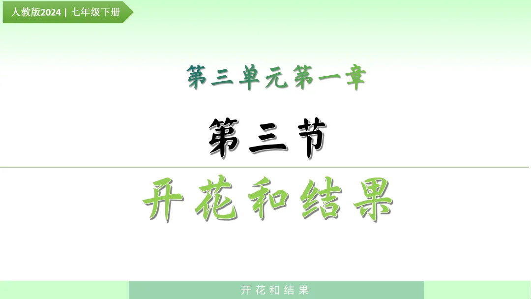 这次给大家带来的是:人教版七年级生物下册 第三单元第一章第三节《开花和结果》。这一节内容知识点非常经典,也是试讲、说课、课堂展示中很常见的一课:既有结构观察,又有过程理解,还特别适合联系生活(如果实、种子、黄瓜南瓜开花结果等现象),非常适合做出“有画面感、能互动、重理解”的课堂。