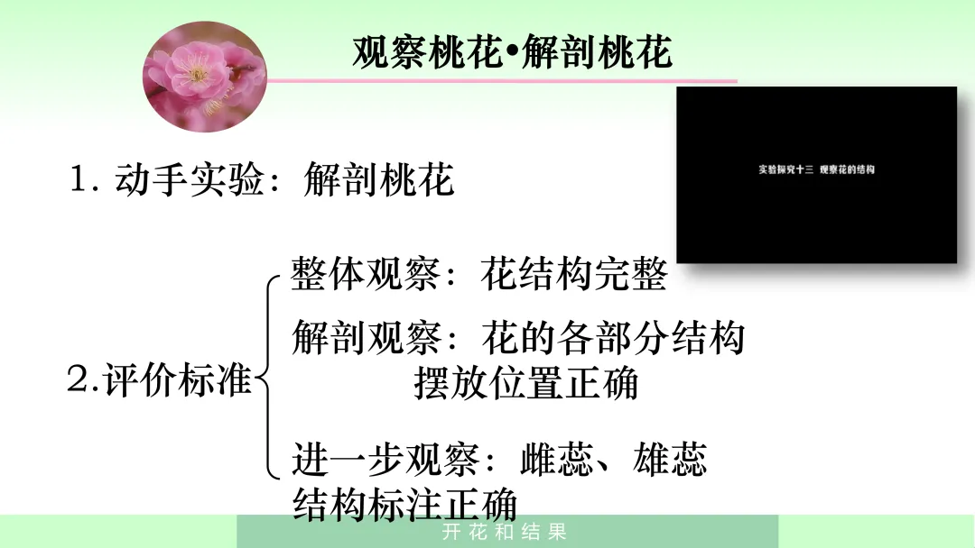 在讲解过程中,我会特别强调两个点:第一,花的结构名称要对应准确,不能混淆层级关系;第二,花的主要结构是雄蕊和雌蕊,因为它们与后续的传粉、受精、结果直接相关。