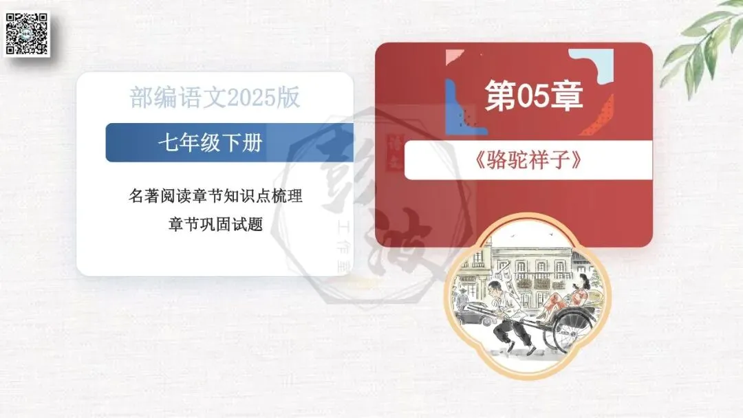 ◆02《骆驼祥子》章节课件24章-情节梳理+人物形象+语句赏析+章节试题(PPT)(65元)