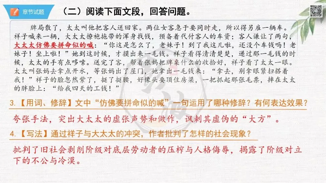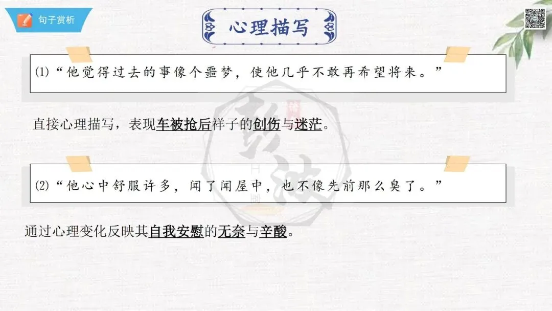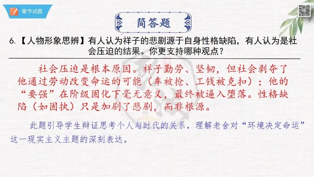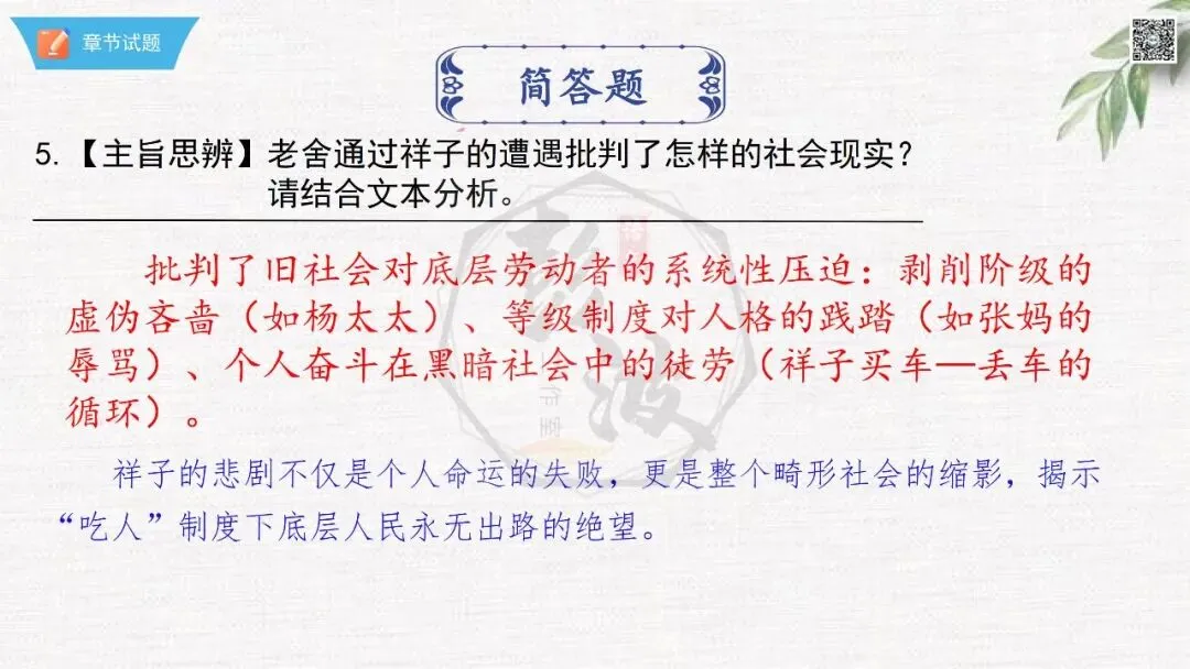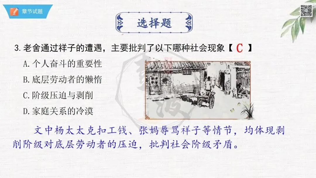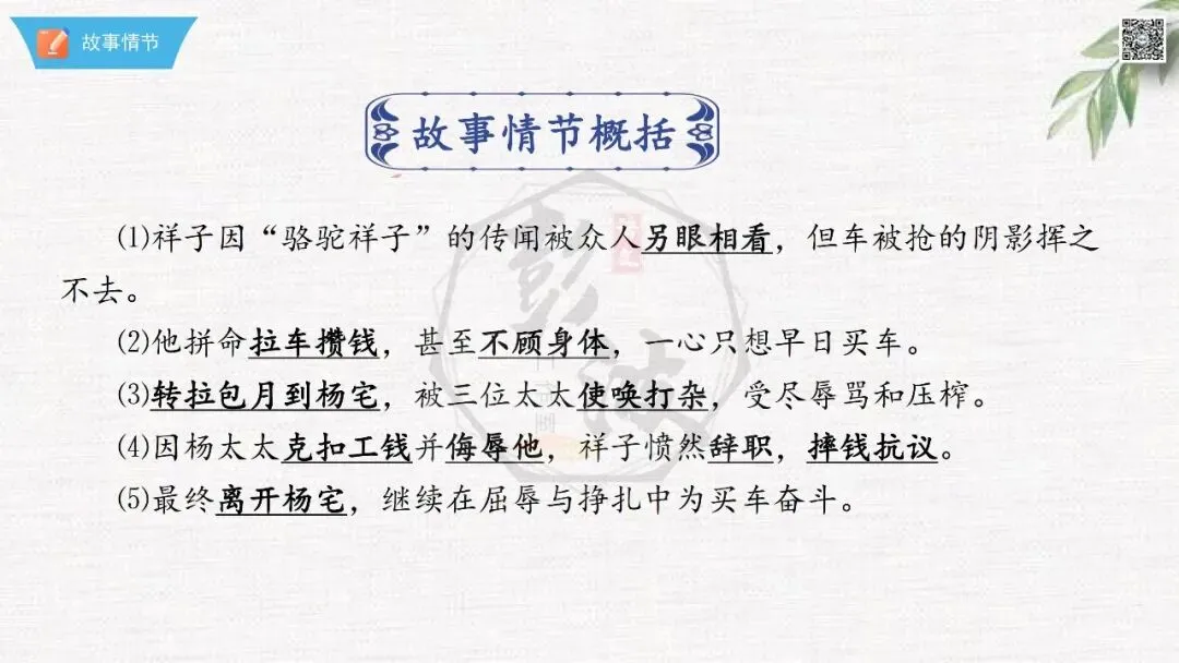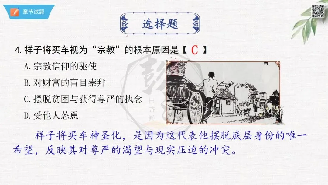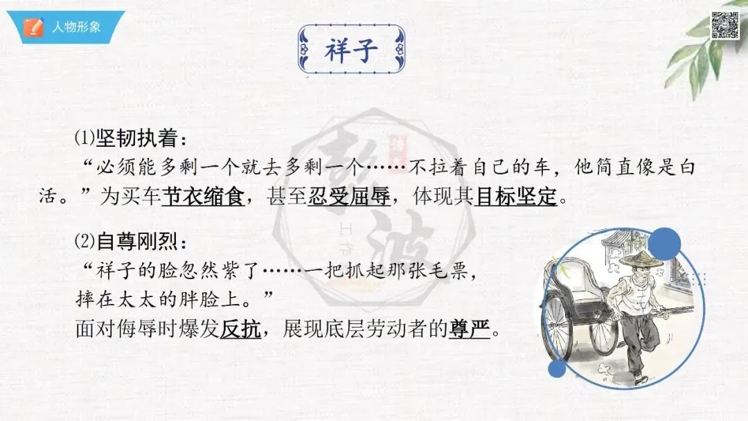 七年级下【骆驼祥子】第23章-情节导读+人物形象+语句赏析+章节试题