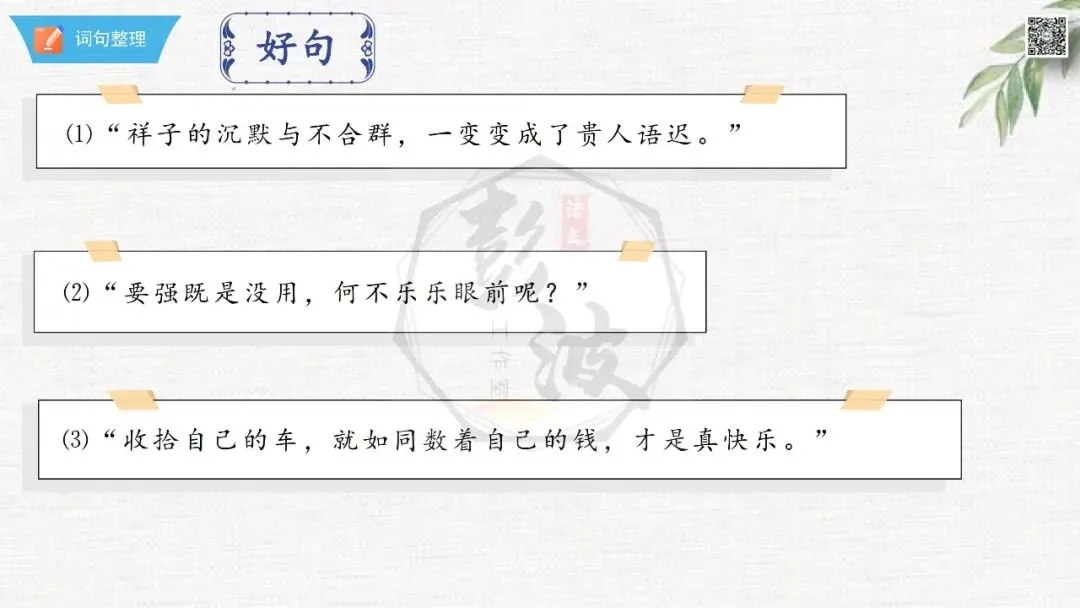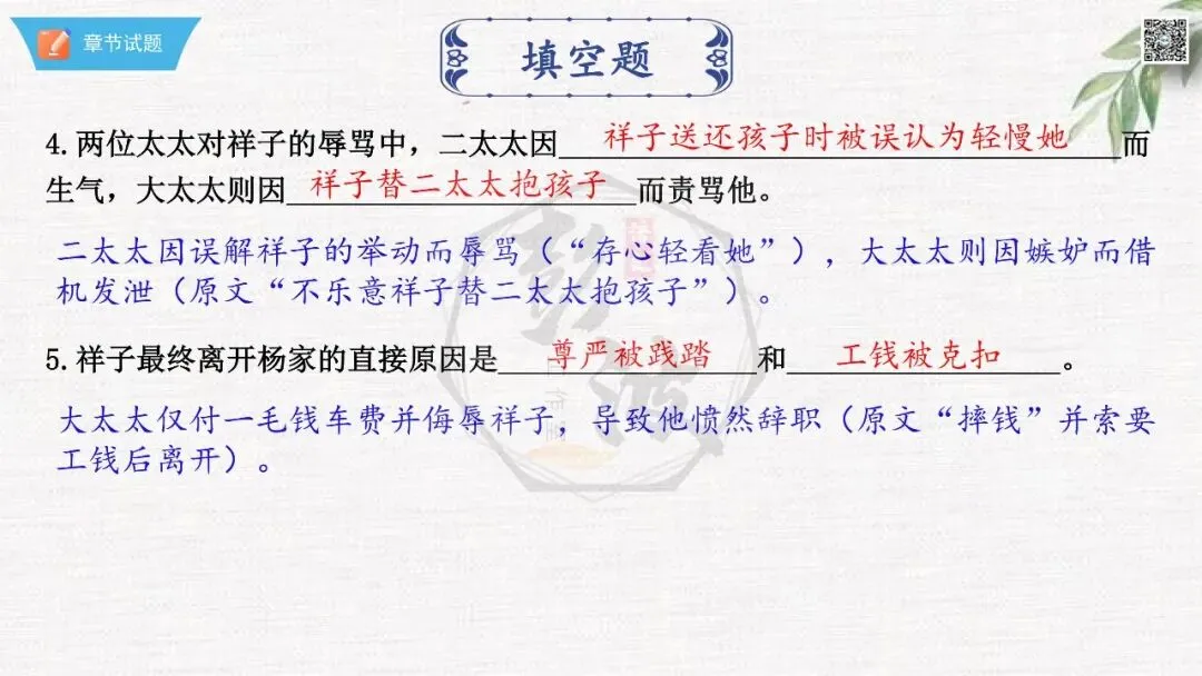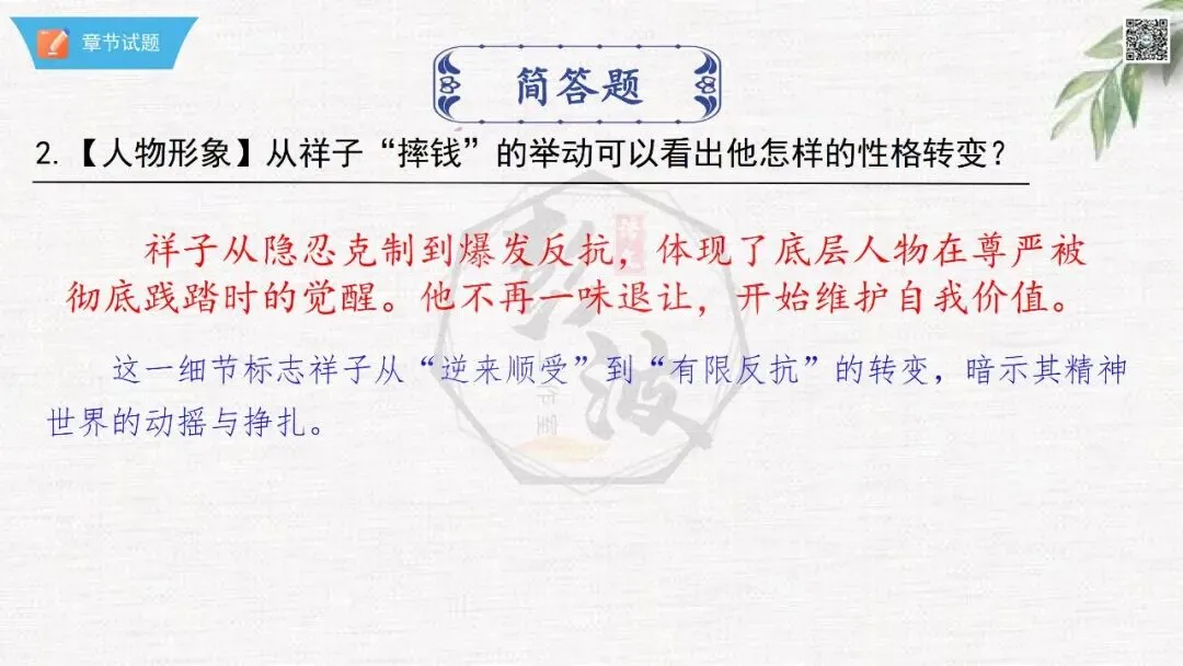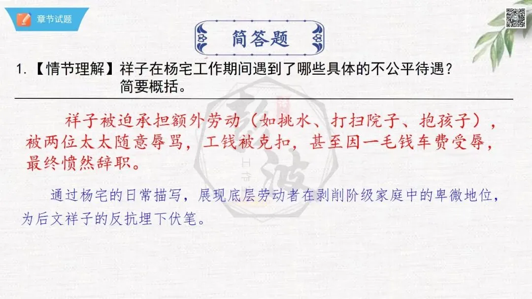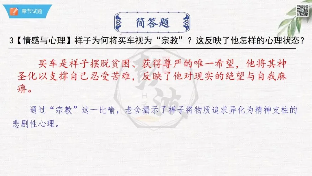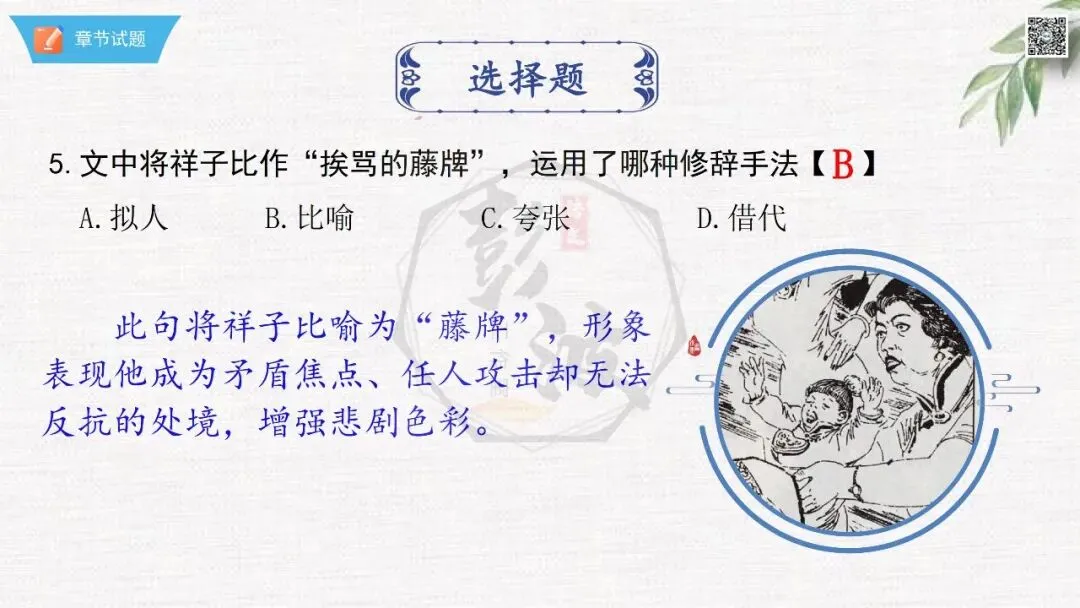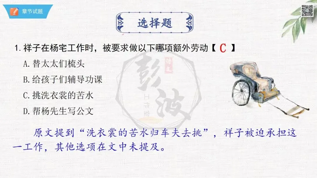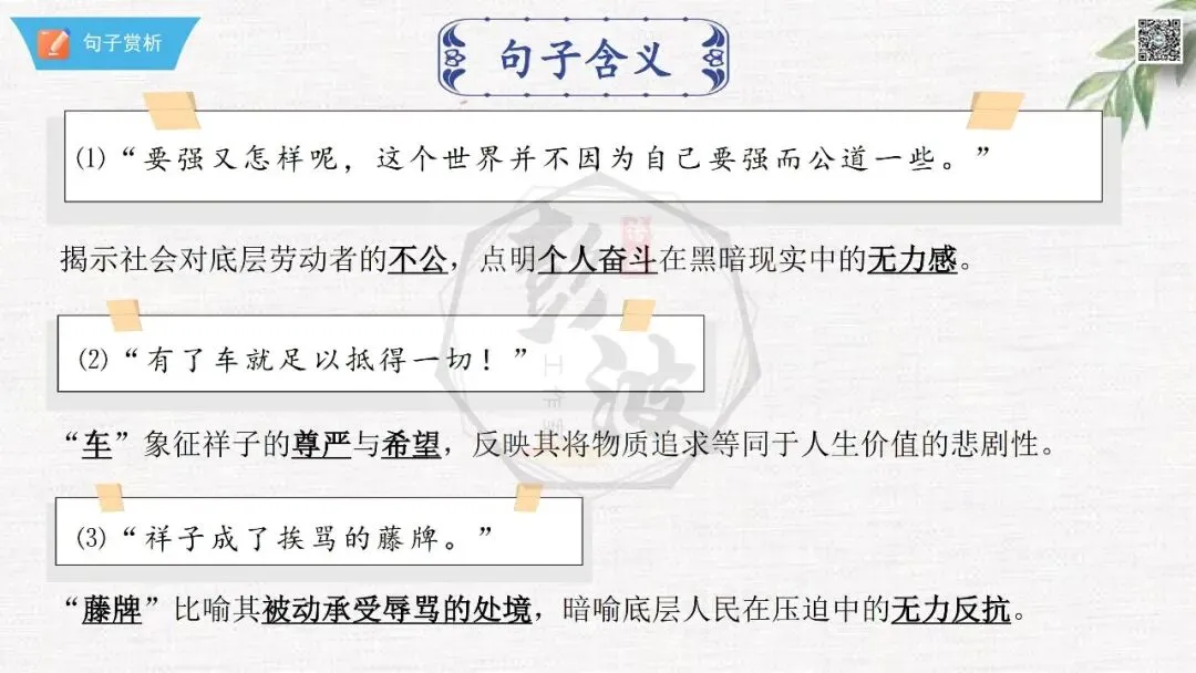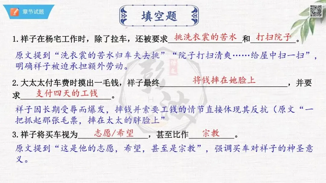 七年级下【骆驼祥子】第23章-情节导读+人物形象+语句赏析+章节试题