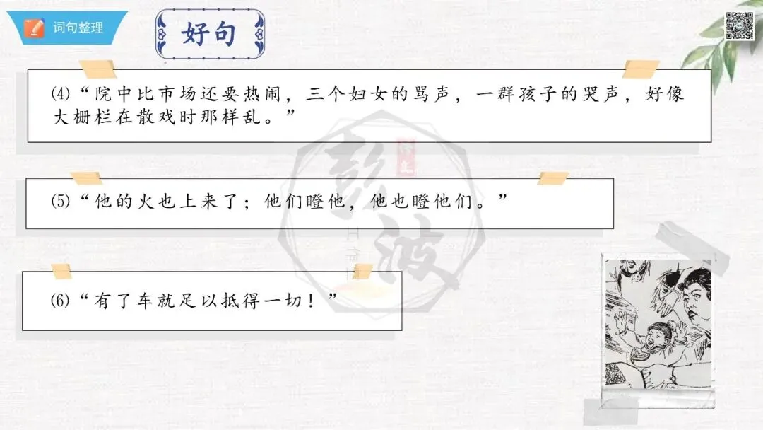 七年级下【骆驼祥子】第6章-情节导读+人物形象+语句赏析+章节试题