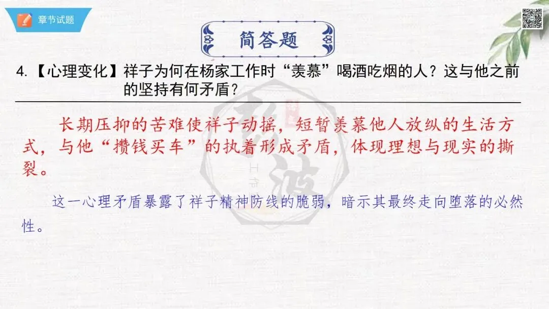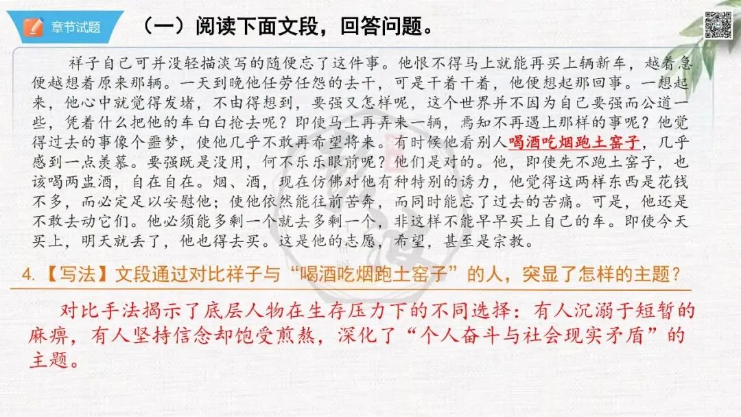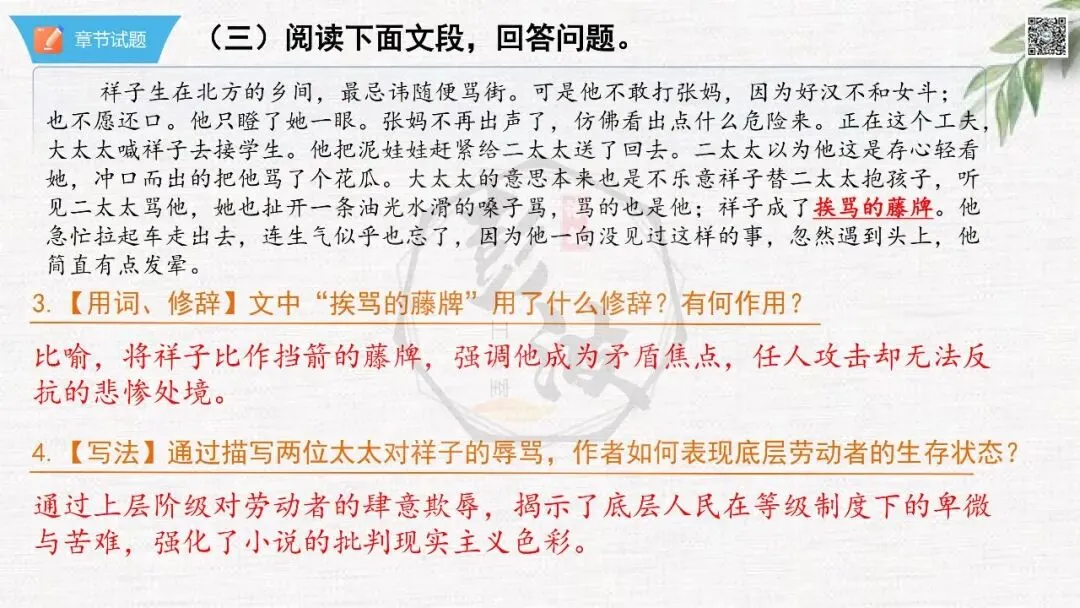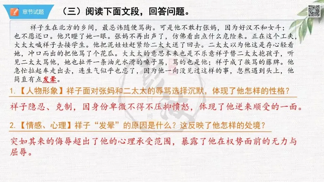 七年级下【骆驼祥子】第24章-情节导读+人物形象+语句赏析+章节试题