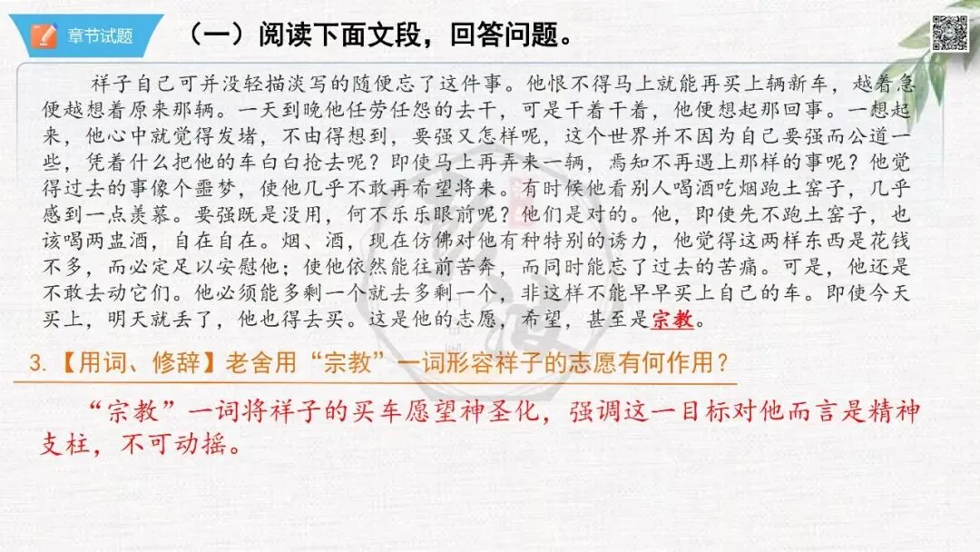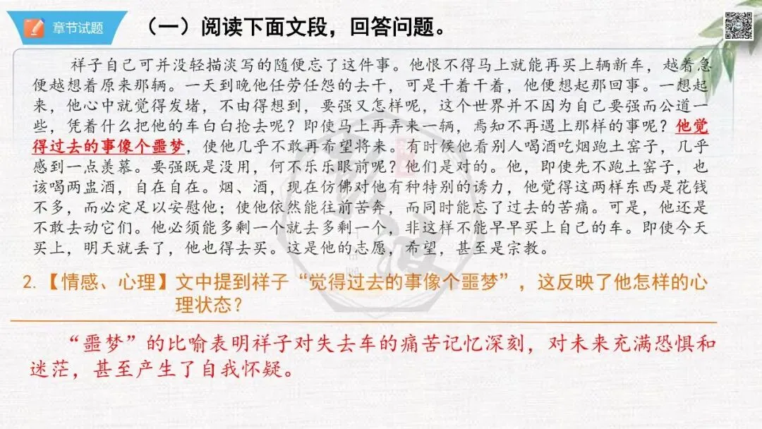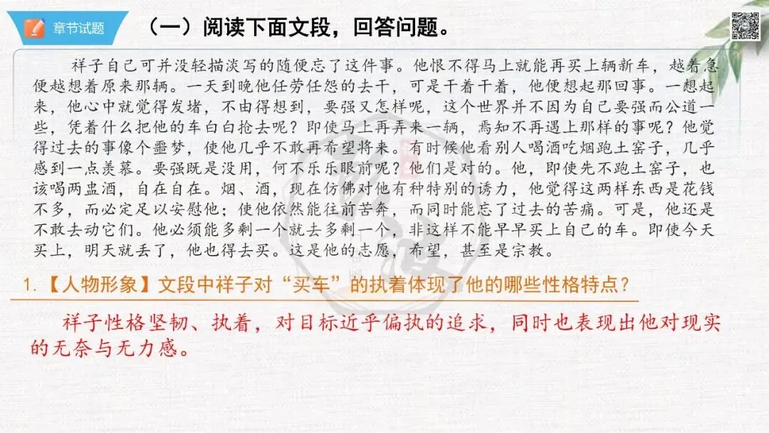 七年级下【骆驼祥子】第7章-情节导读+人物形象+语句赏析+章节试题