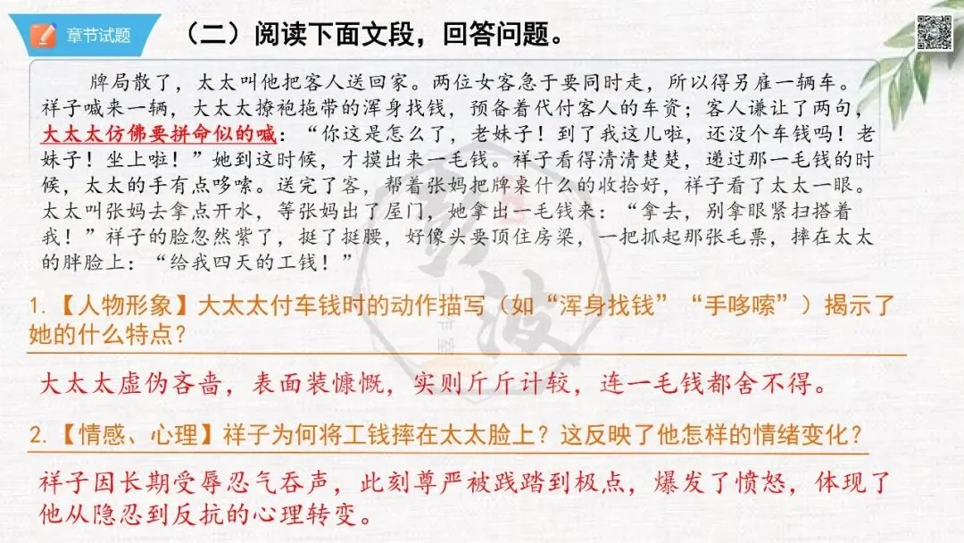 七年级下【骆驼祥子】第16章-情节导读+人物形象+语句赏析+章节试题