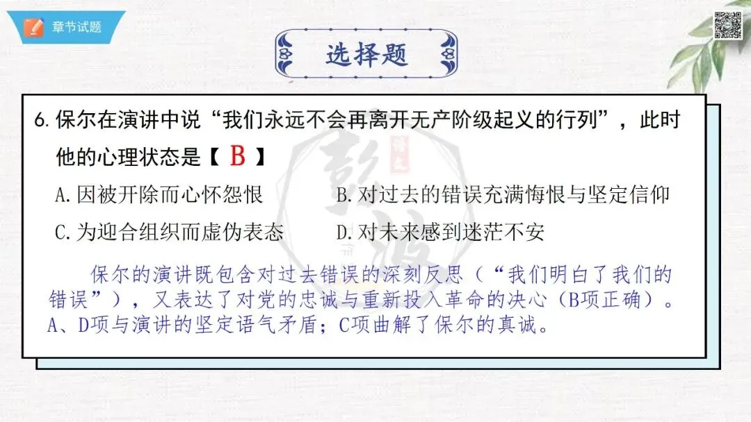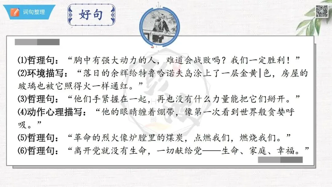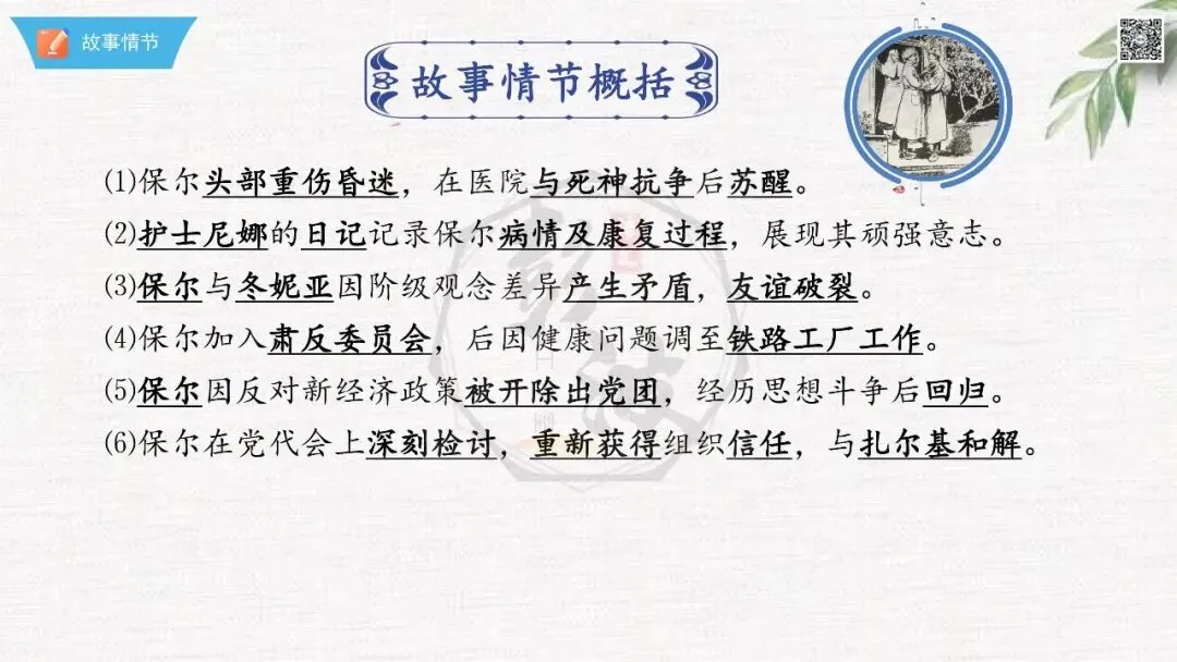 七年级下【钢铁是怎样炼成的】第二部-第6章-情节导读+人物形象+语句赏析+章节试题
