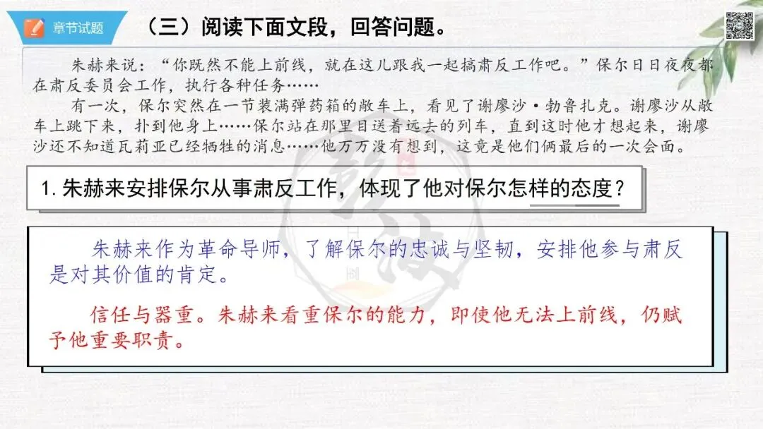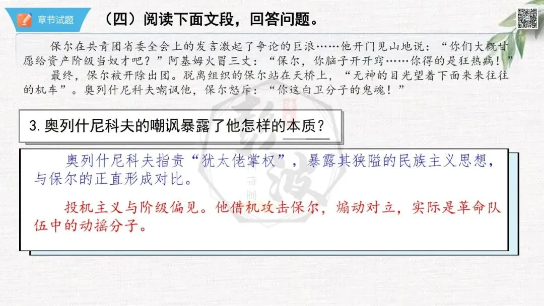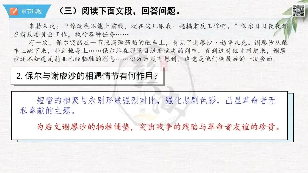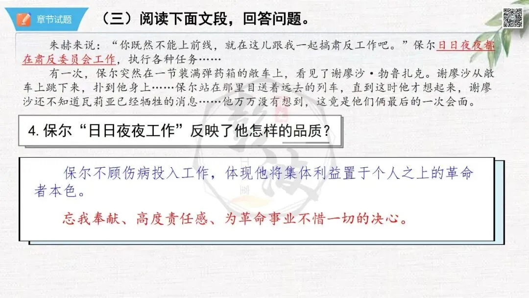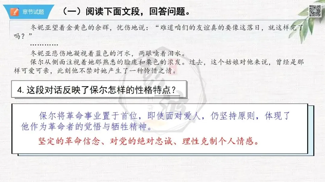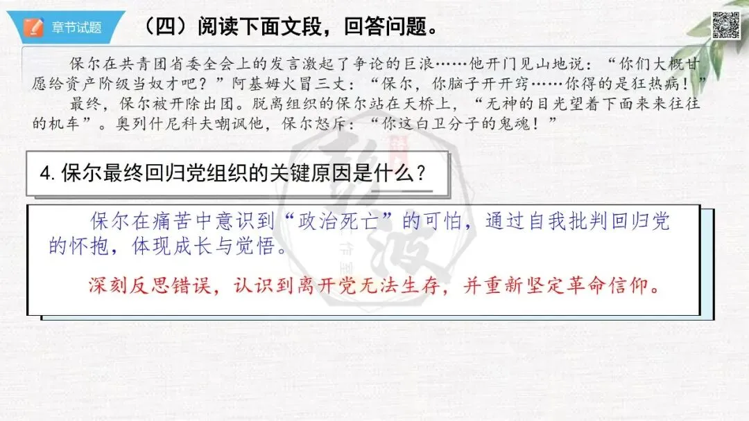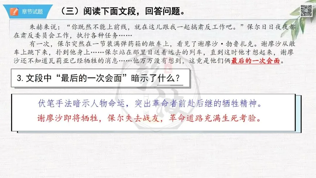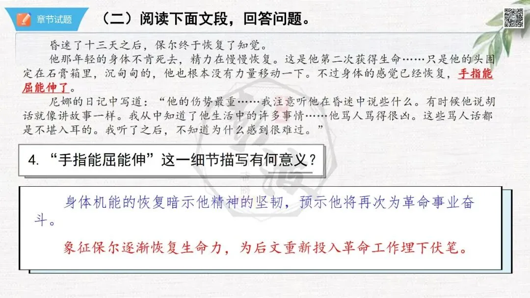 七年级下【钢铁是怎样炼成的】第二部-第5章-情节导读+人物形象+语句赏析+章节试题