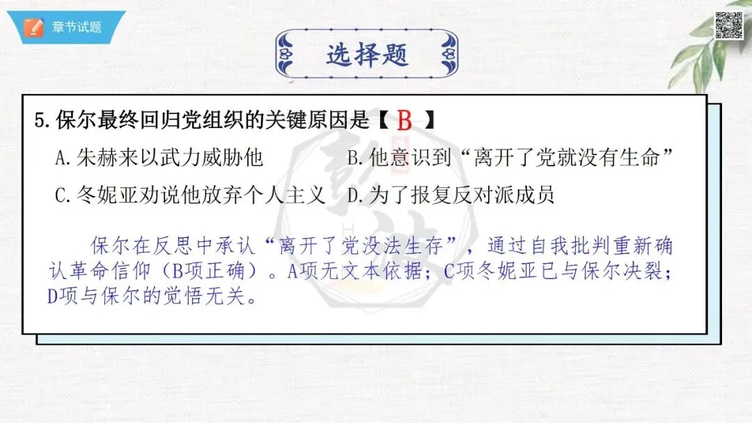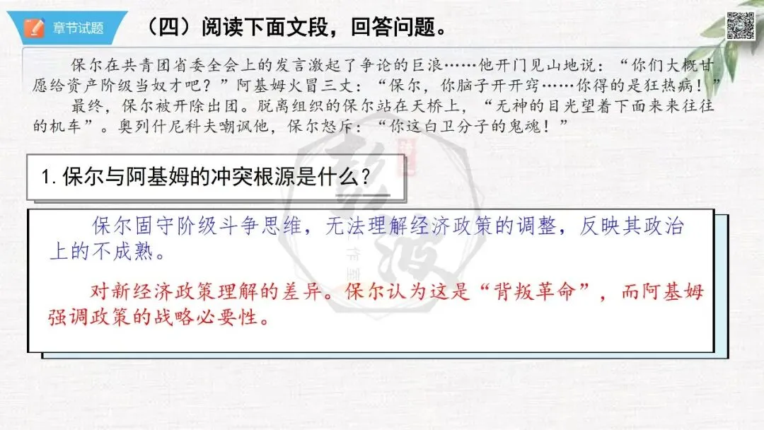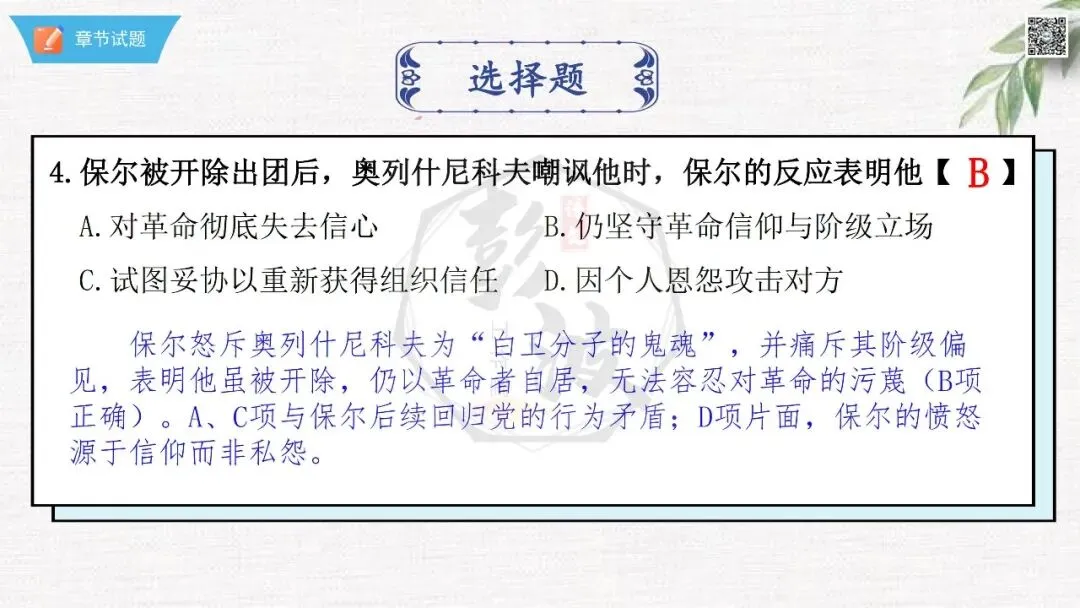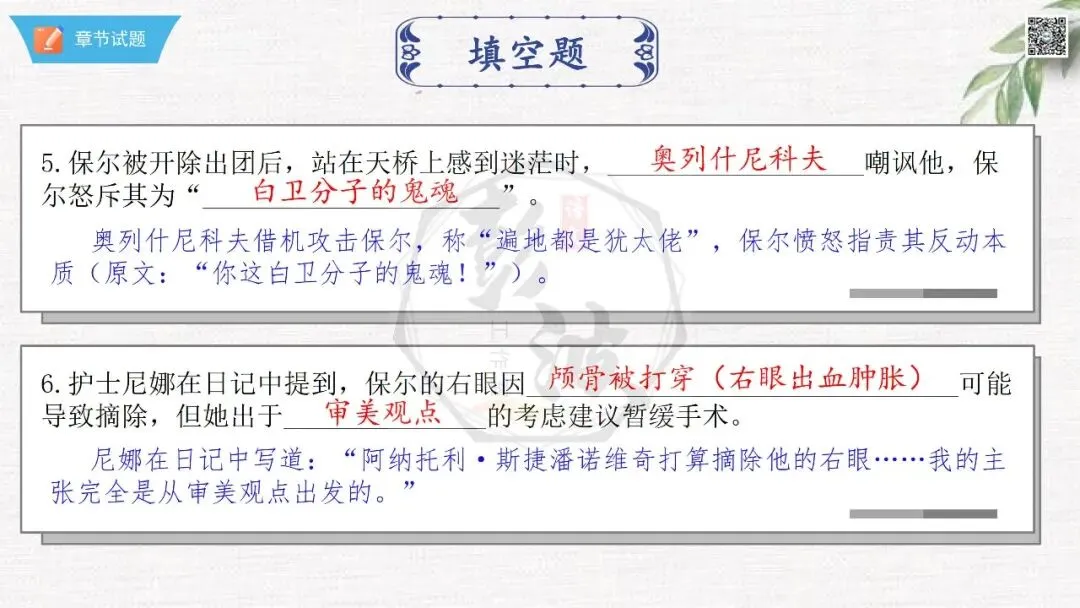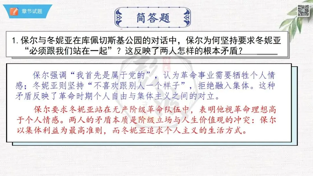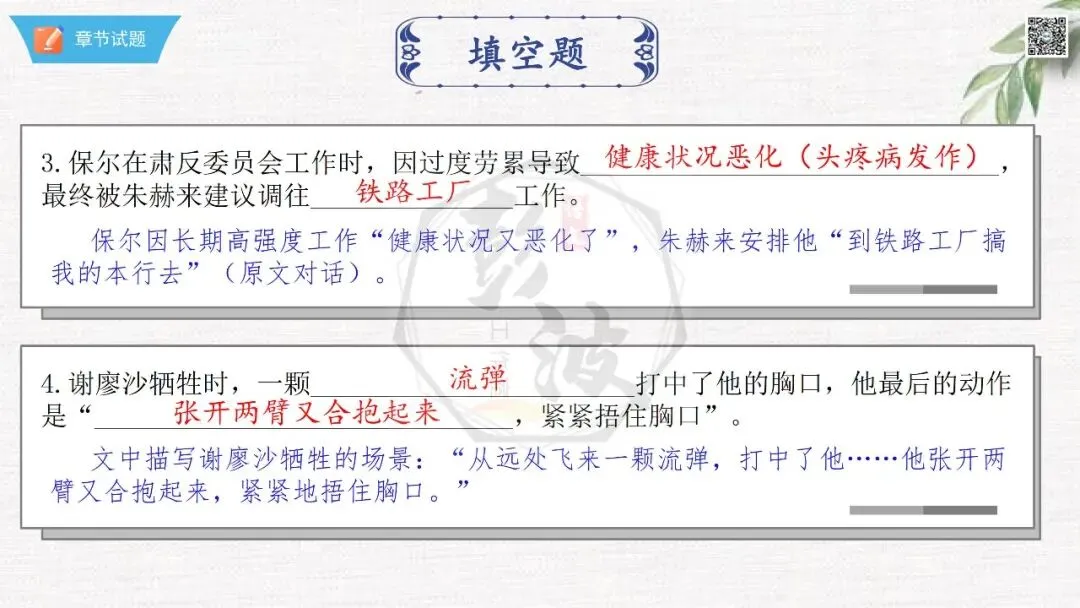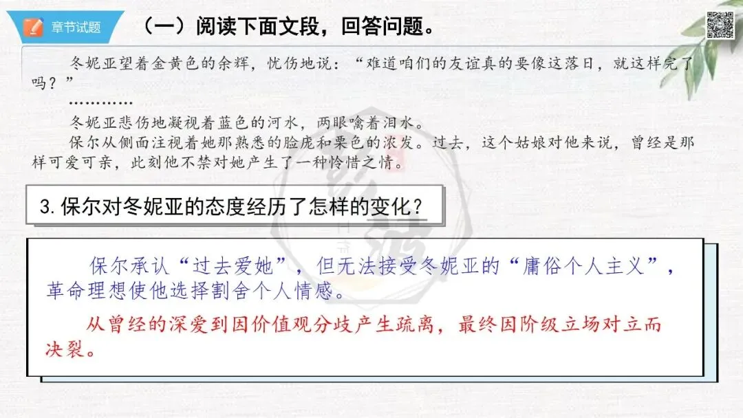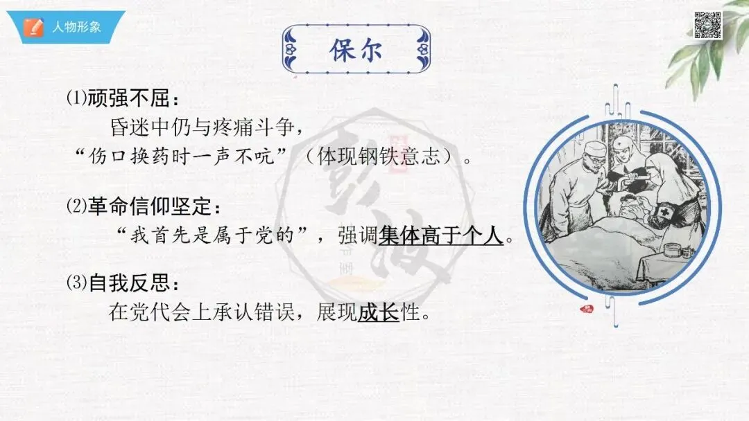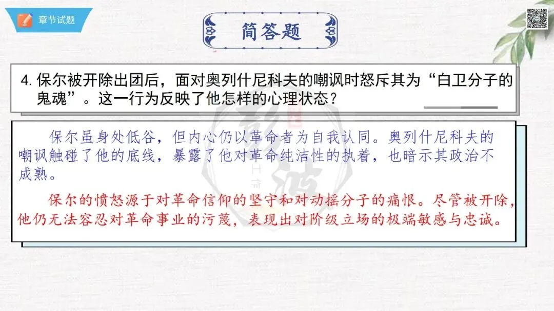 七年级下【钢铁是怎样炼成的】第二部-第5章-情节导读+人物形象+语句赏析+章节试题