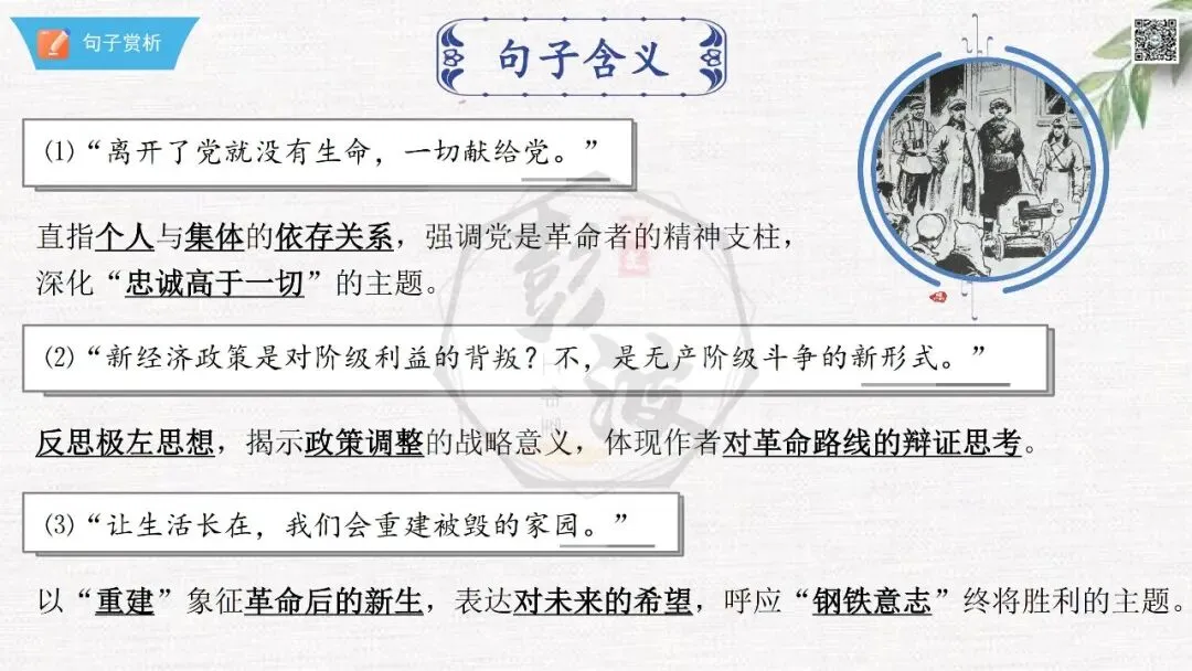 七年级下【钢铁是怎样炼成的】第二部-第1章-情节导读+人物形象+语句赏析+章节试题
