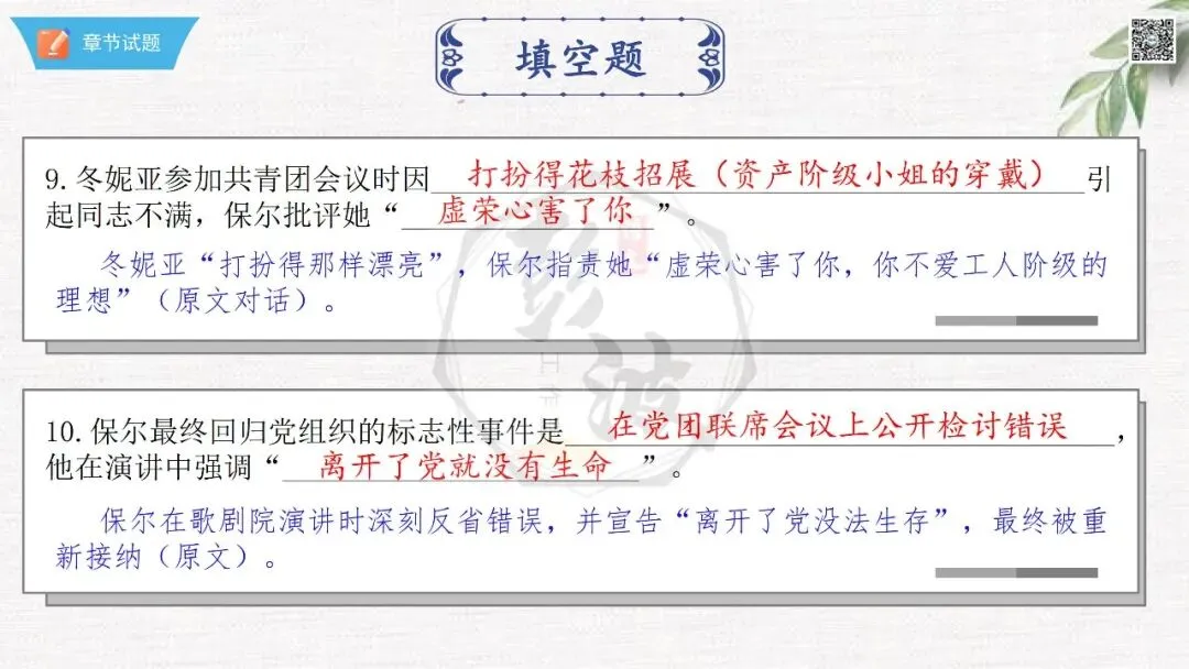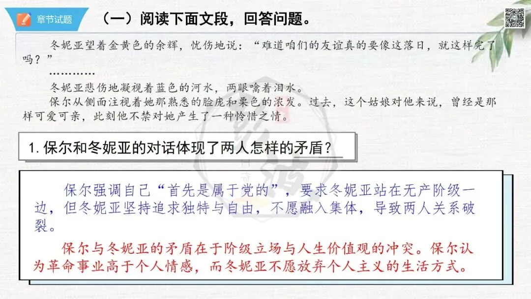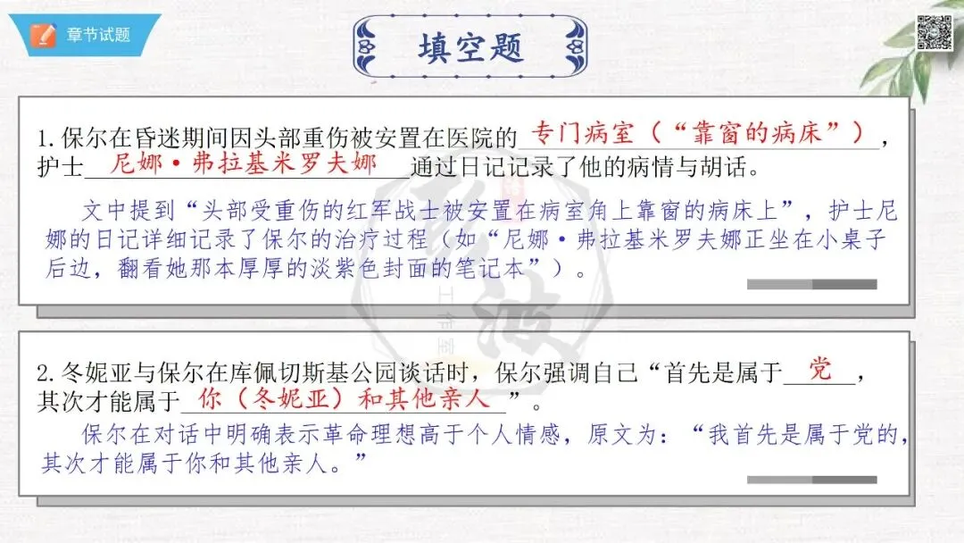七年级下【钢铁是怎样炼成的】第二部-第9章-情节导读+人物形象+语句赏析+章节试题