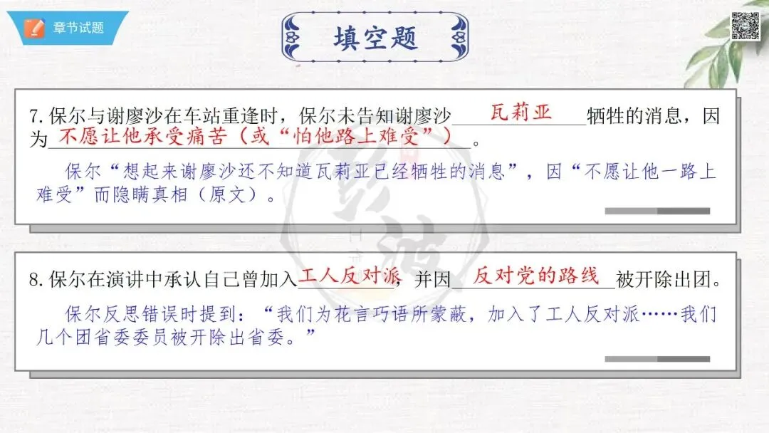 七年级下【钢铁是怎样炼成的】第二部-第8章-情节导读+人物形象+语句赏析+章节试题