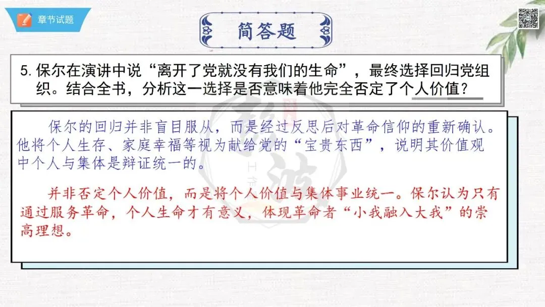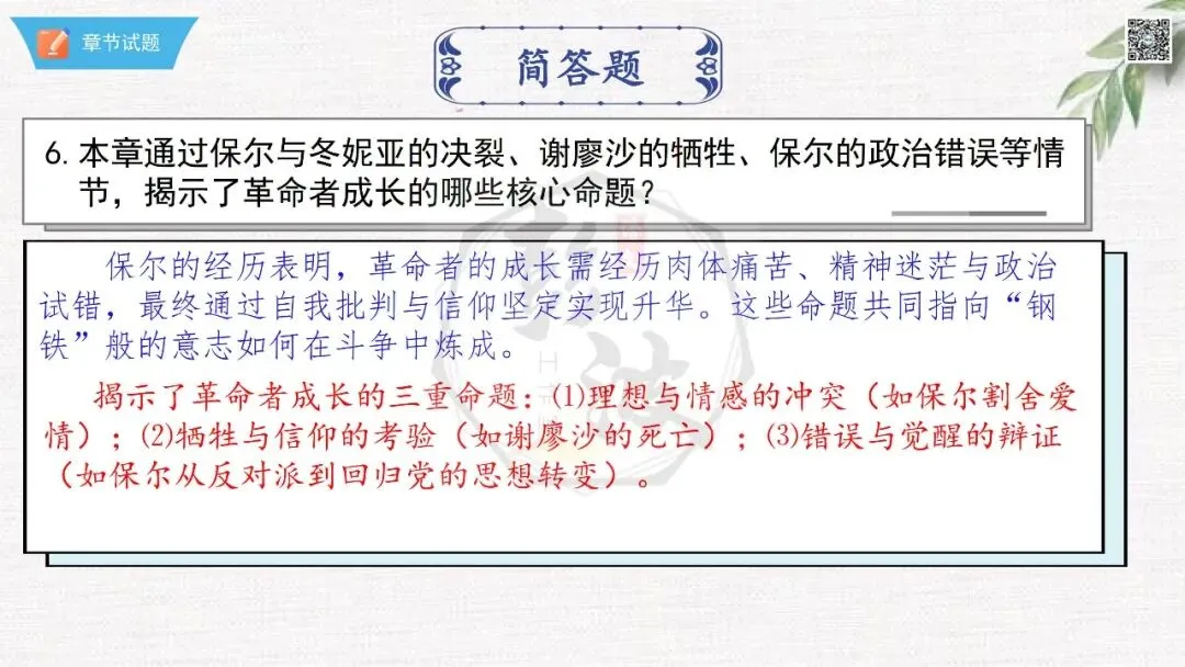 ◆02《钢铁是怎样炼成的》章节课件18章-情节梳理+人物形象+语句赏析+章节试题(PPT)(50元)