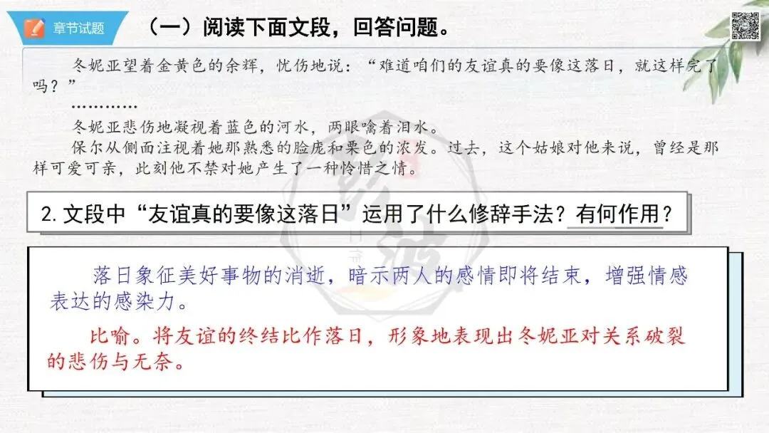 当前位置:首页>课件>七年级下【钢铁是怎样炼成的】章节课件-第一部-第9章-情节导读+人物形象+语句赏析+章节试题