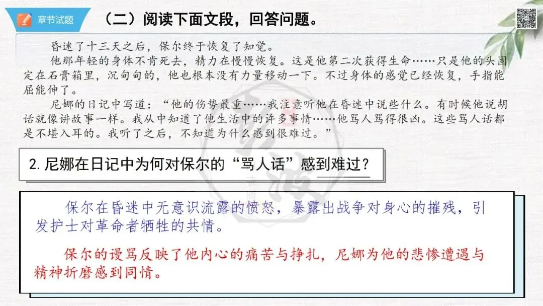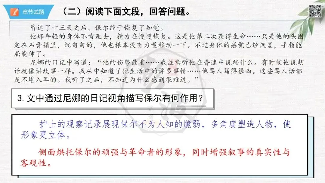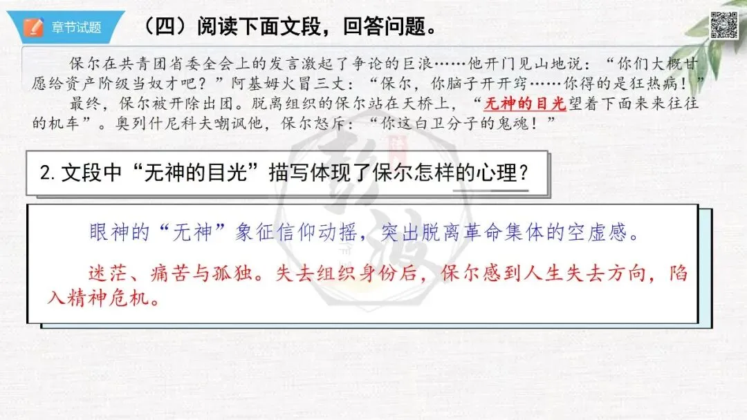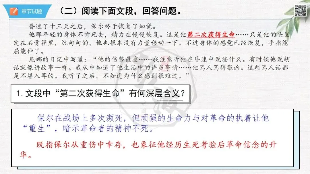 七年级下【钢铁是怎样炼成的】第二部-第2章-情节导读+人物形象+语句赏析+章节试题
