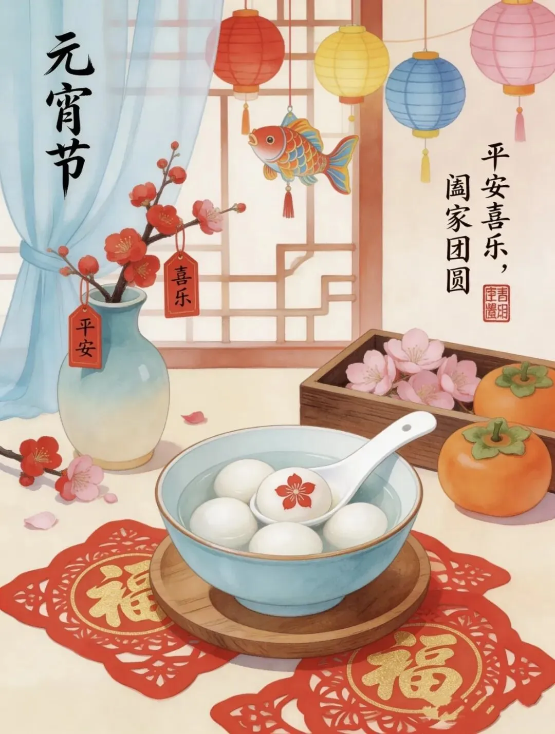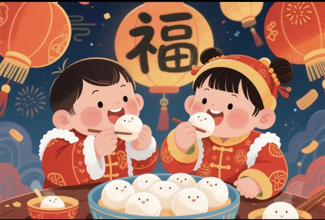 - 可以加入汤圆、舞龙、烟花等元素,让画面更热闹。
