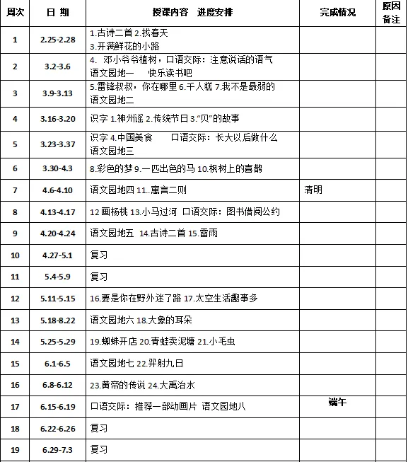 本册教材安排课文25篇。教材以专题组织单元,以整合的方式组织教材内容,共分八个单元:第1~4课为为“春光篇”,课文内容大都与春天的物候和热爱春天有关;第5~7课为“爱心篇”,意在培养儿童的爱心;识字1~4课为“传统文化篇”,意在弘扬中华民族传统文化;第 8~11课为“童话篇”,意在培养学生热爱生活的情感;第 12~14课为“道理篇”意在培养学生遇到问题要开动脑筋思考解决问题的办法;第15~18课为“自然科技篇”,意在21~24课为“人物篇”意在让学生学习优秀品质,感悟做人的道理;让学生关注科学,从而爱科学,学科学;第19~22课为“故事篇”意在让学生学习优秀品质,感悟其中的道理;第23~25课为“历史篇”意在让学生了解历史故事,感悟祖先创造文明的道理。