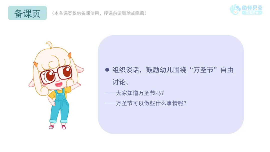 l组织谈话,鼓励幼儿围绕“万圣节”自由讨论。
