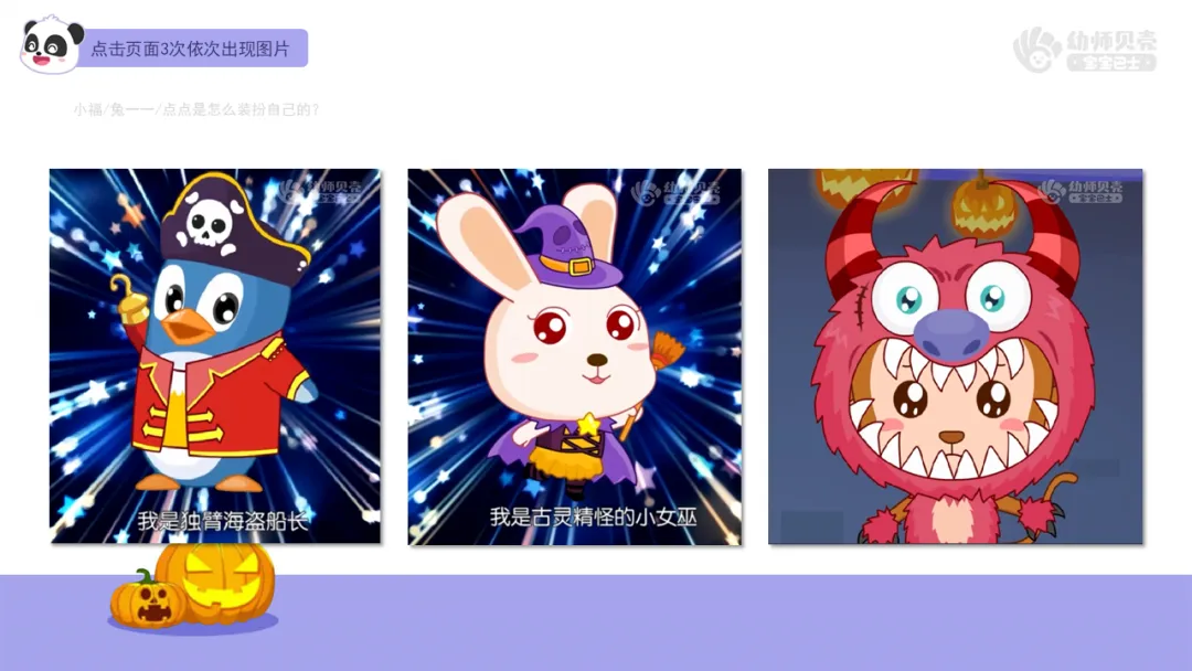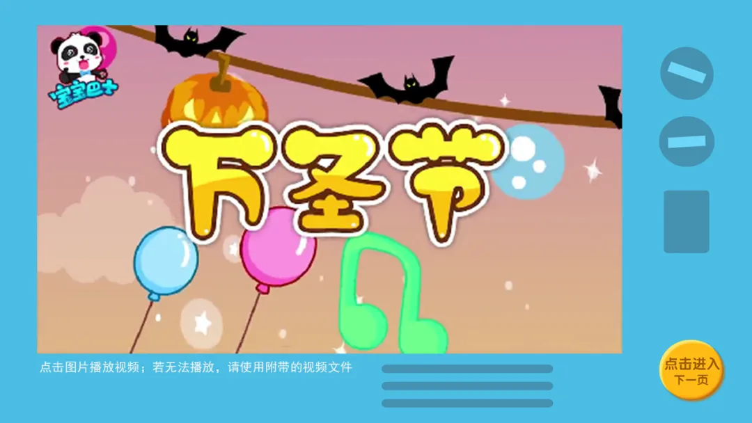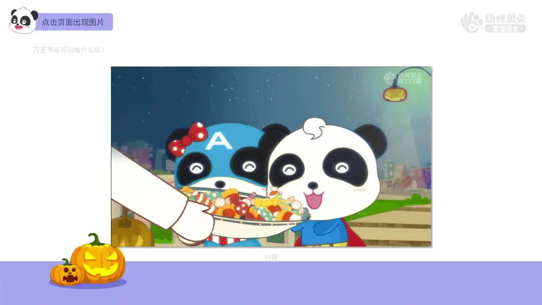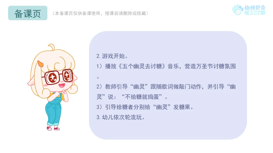 1)播放《五个幽灵去讨糖》音乐,营造万圣节讨糖氛围。