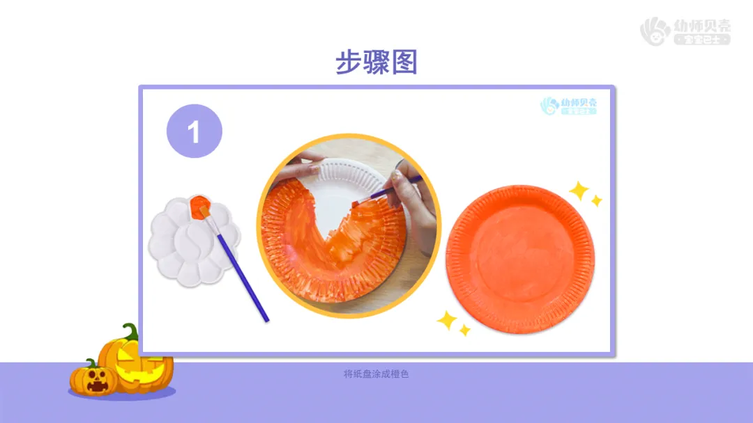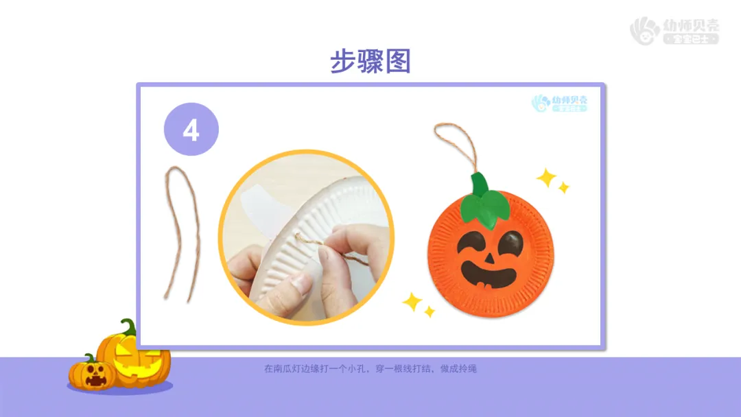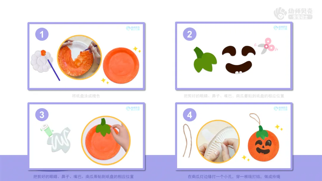 l尝试用纸盘制作南瓜灯,体验提着南瓜灯去讨糖的游戏乐趣。