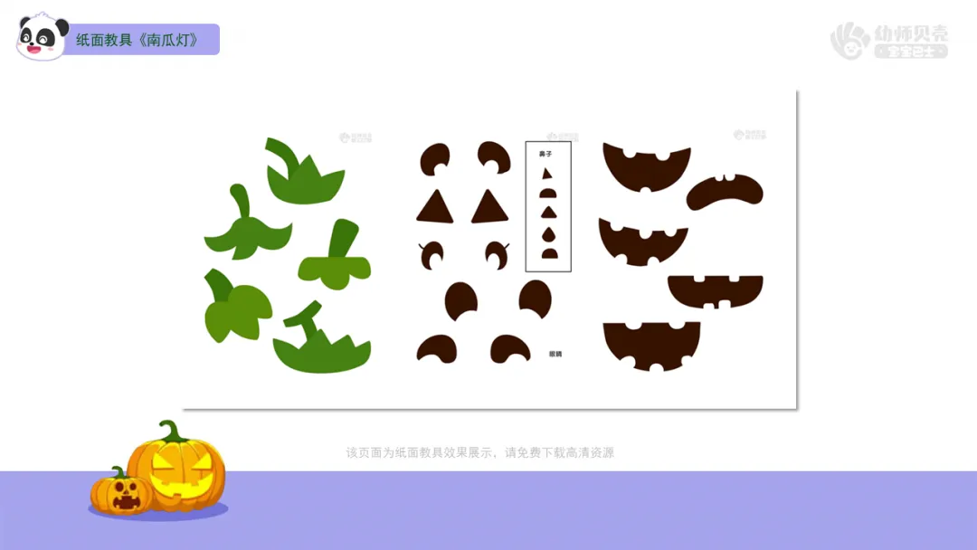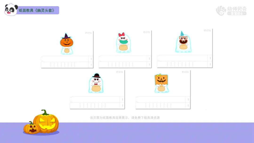 l纸面教具:《南瓜灯》、《幽灵头套》。