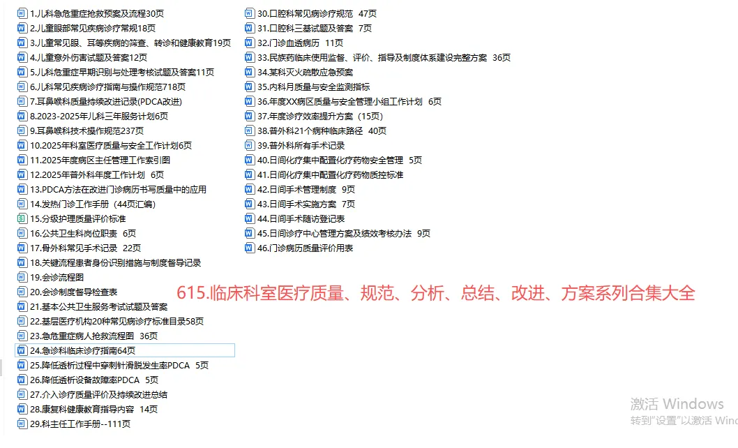 医疗质量、规范、分析、总结、改进、方案系列合集大全
