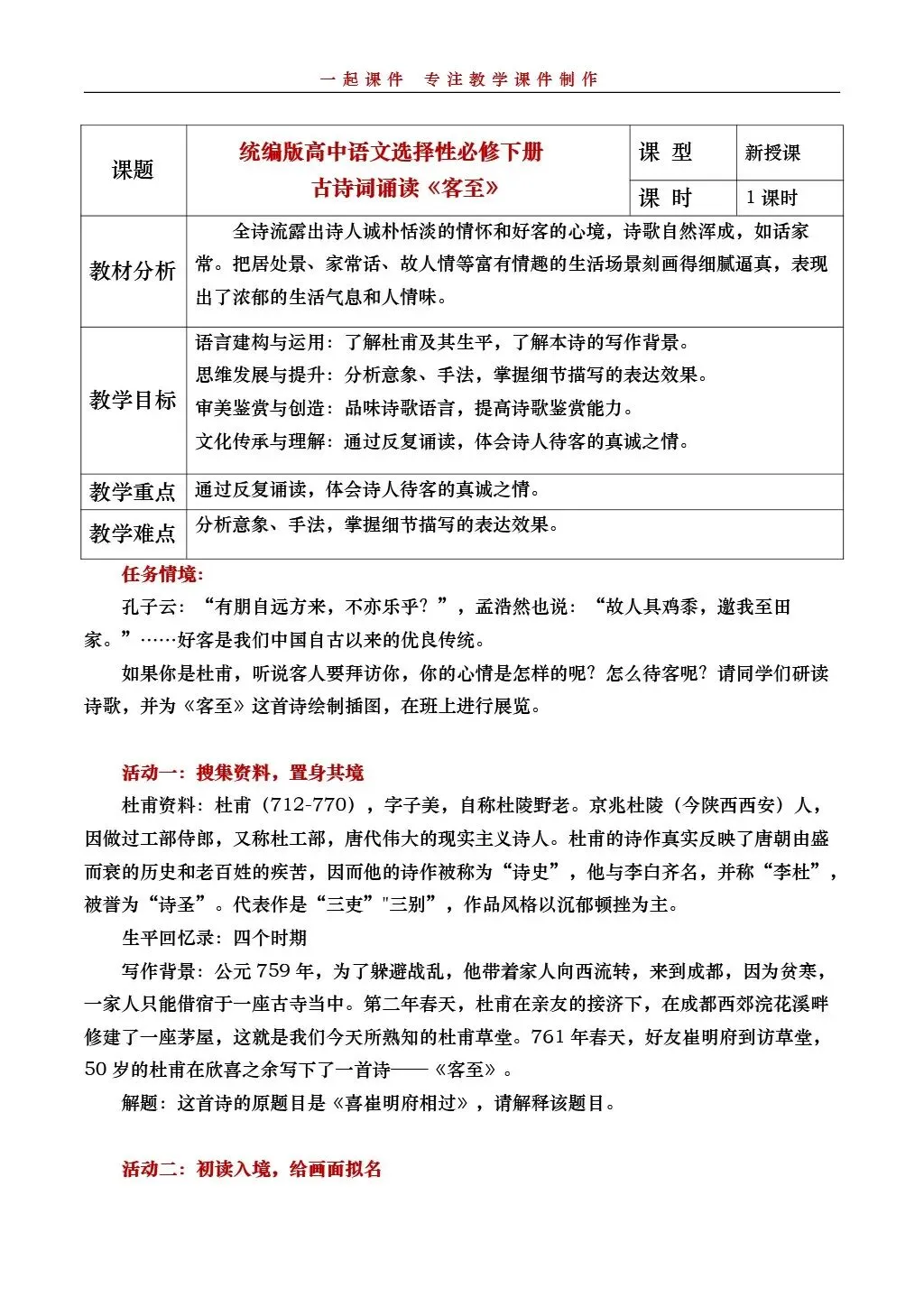 >【一起语文选必下】| 《客至》:课件+教学设计
