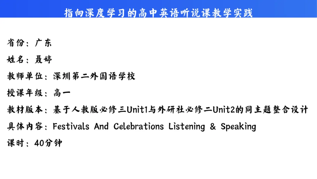 说课课件:人教版必修第三册 Unit 1 Listening and Speaking 说课 (广东 聂婷)