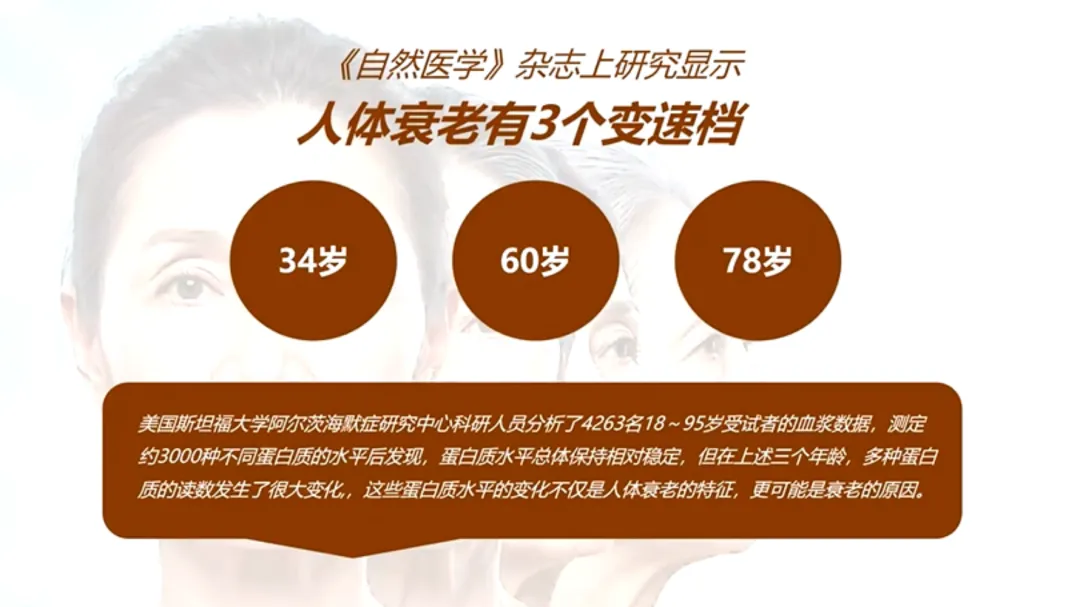 研究发现,人体有三个衰老加速的关键年龄:34岁、60岁和78岁。