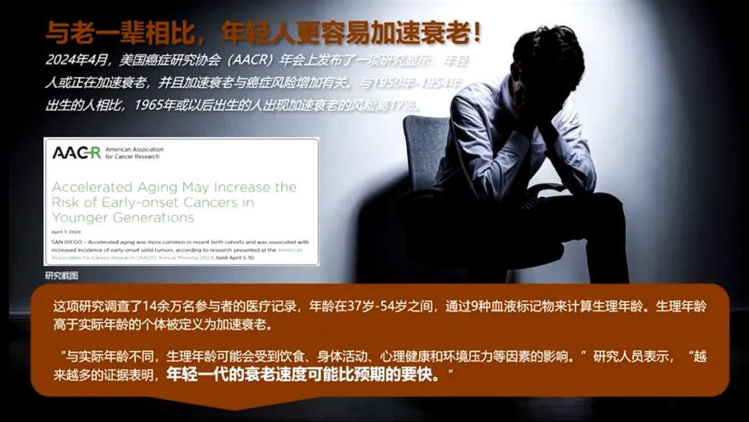 这意味着,尽管生活环境变好了,但我们这一代人,正被更大的压力、更不健康的饮食和生活方式所裹挟,衰老正在加速向我们逼近。所以,抗衰不是老年人的专利,而是每个年轻人,从现在就该开始的必修课。