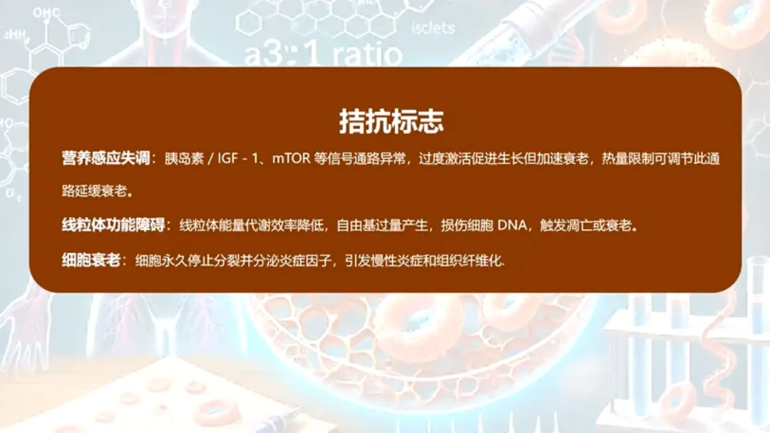 营养感应失调,比如胰岛素不工作了,mTOR通路过度激活,反而加速了衰老。