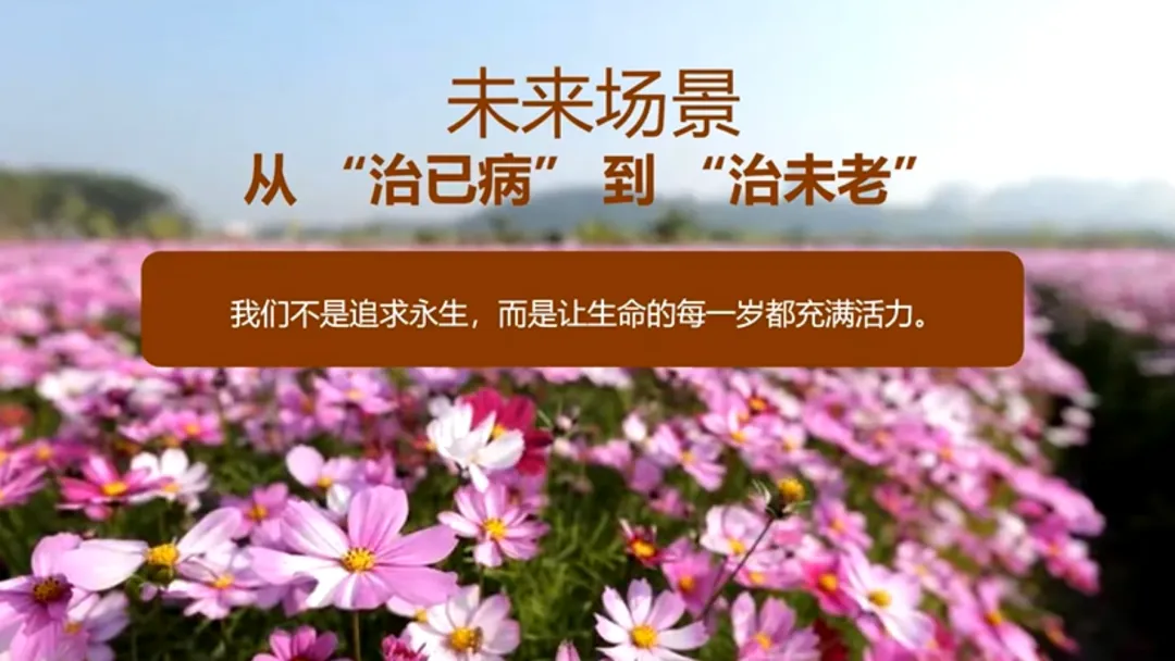 最后,想和大家分享一个理念。抗衰的未来方向,不是从“治已病”到“治未病”,而是要更进一步,做到 “治未老”。