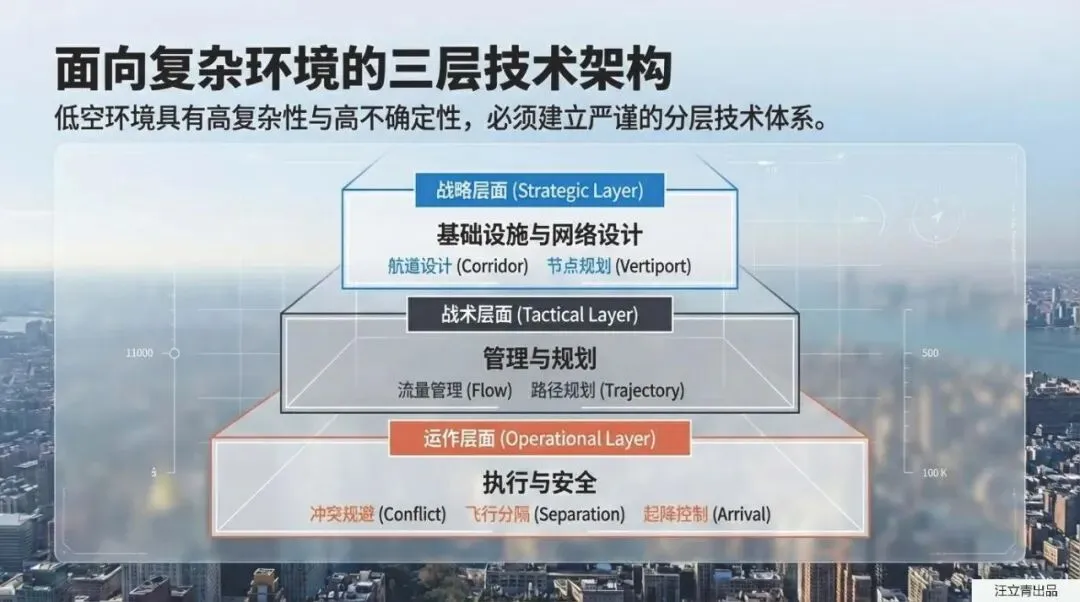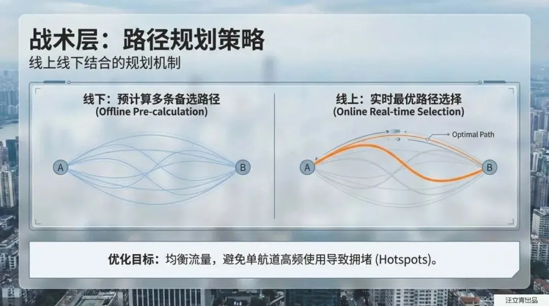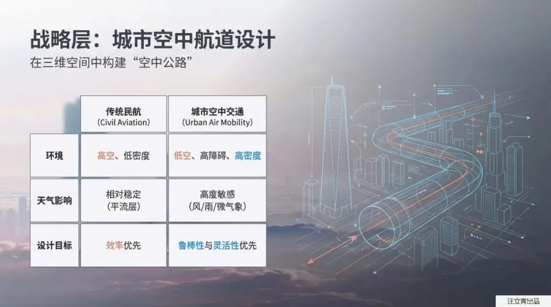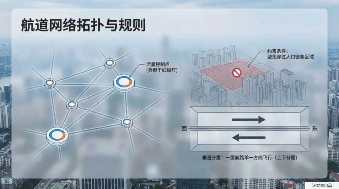 不过,要在天上飙车,可不能像无头苍蝇一样乱飞,这背后需要极其硬核的战略和战术规划。首先得在空中“修马路”,也就是航道设计。为了不扰民、降低噪音,空中的虚拟航道会巧妙地避开人口密集区,而且跟地面分左右车道不同,空中航道是通过“上下分层”来规划单向飞行的。不仅如此,这些空中航道还会像地面的“潮汐车道”一样,根据交通量甚至大风、暴雪等天气状况,由中央系统统一进行动态调整和流量管控。当然,起飞降落也得有专门的场地,所以未来的城市里会建起各种垂直起降停机坪(Vertiport),系统甚至会提前算好哪条空中路线最通畅,为你量身定制一条结合了线上实时数据和线下备选方案的完美航线,彻底告别“空中大塞车”。