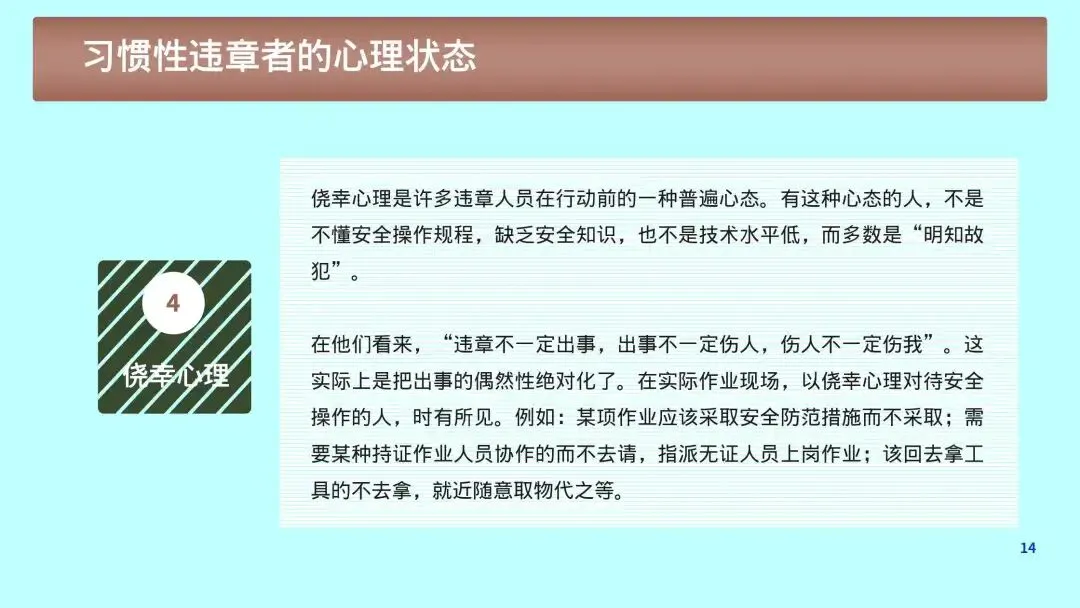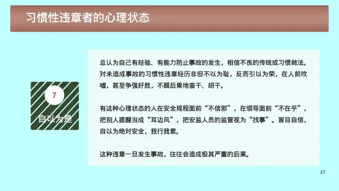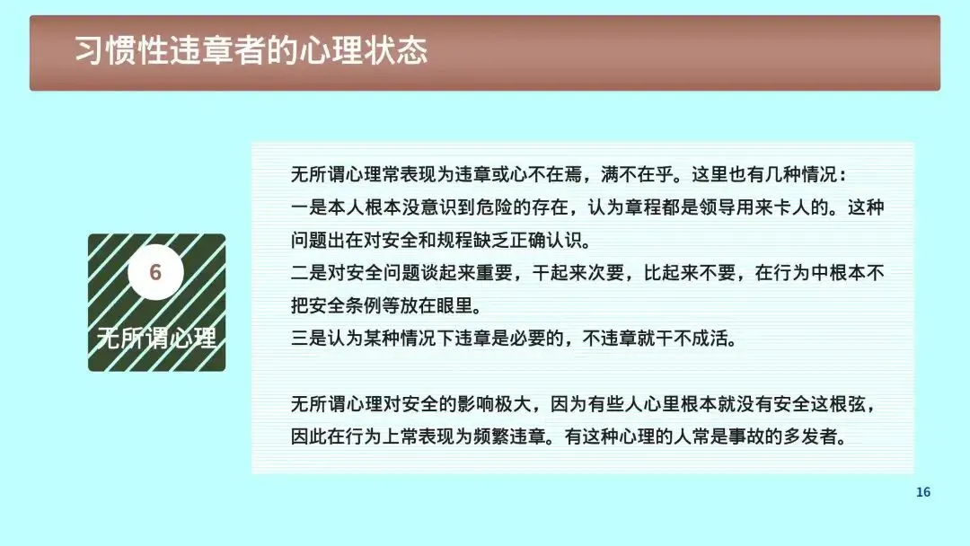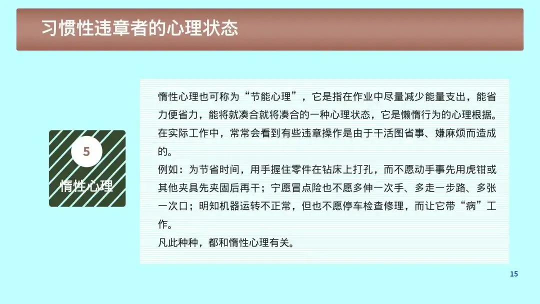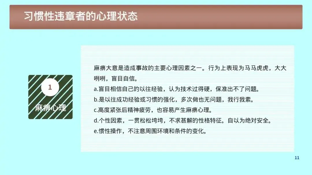 1. 心理根源:侥幸、省事、逞能、从众、疲劳、麻痹大意。