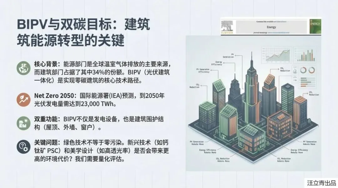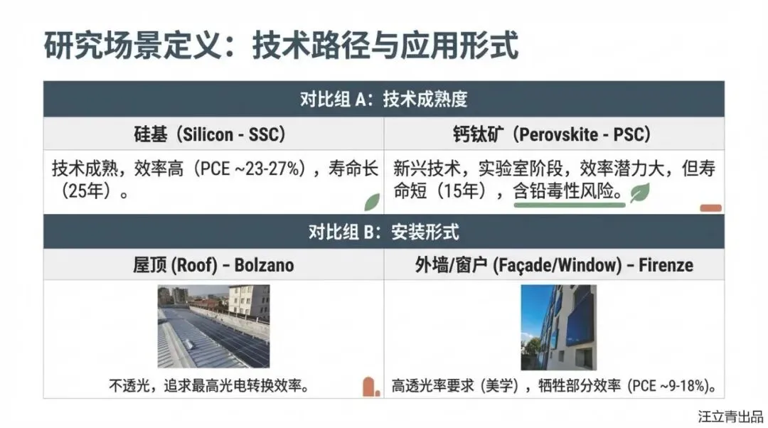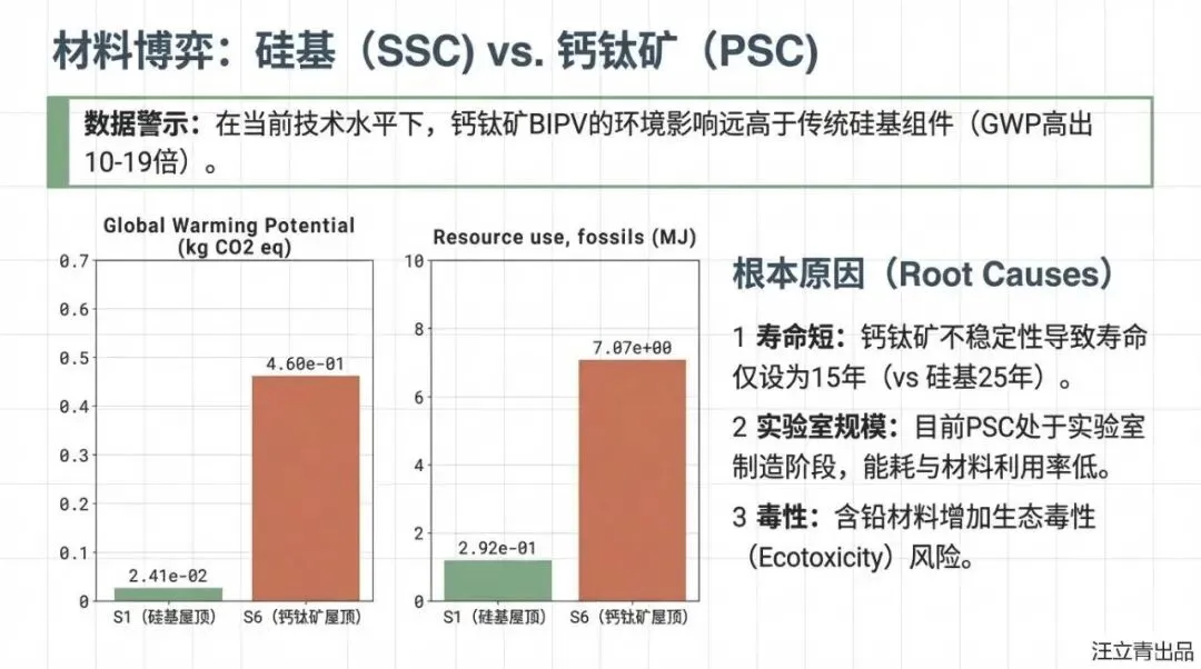 想象一下,未来的摩天大楼不再仅仅是钢筋混凝土的丛林,而是每一块玻璃、每一片外墙都在默默地吸收阳光并转化为电能,让建筑本身变成一个巨大的“充电宝”,这就是建筑光伏一体化(BIPV)技术带给我们的未来蓝图。在目前的市场上,硅基太阳能电池(SSC)是稳扎稳打的“老大哥”,但光伏界正升起一颗名为“钙钛矿太阳能电池(PSC)”的超级新星,它不仅能做得薄如蝉翼,还能做成五颜六色甚至半透明的窗户,美学价值直接拉满。然而,根据这份最新的生命周期评估报告,这位“颜王”目前正面临着巨大的成长烦恼:虽然它在实验室里转换效率惊人,但实际应用中却显得有些“弱不禁风”,不仅寿命比硅电池短,而且目前的生产成本和环境足迹也远高于传统硅电池。