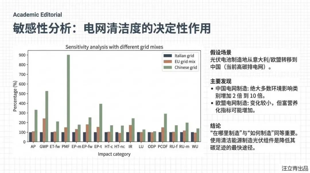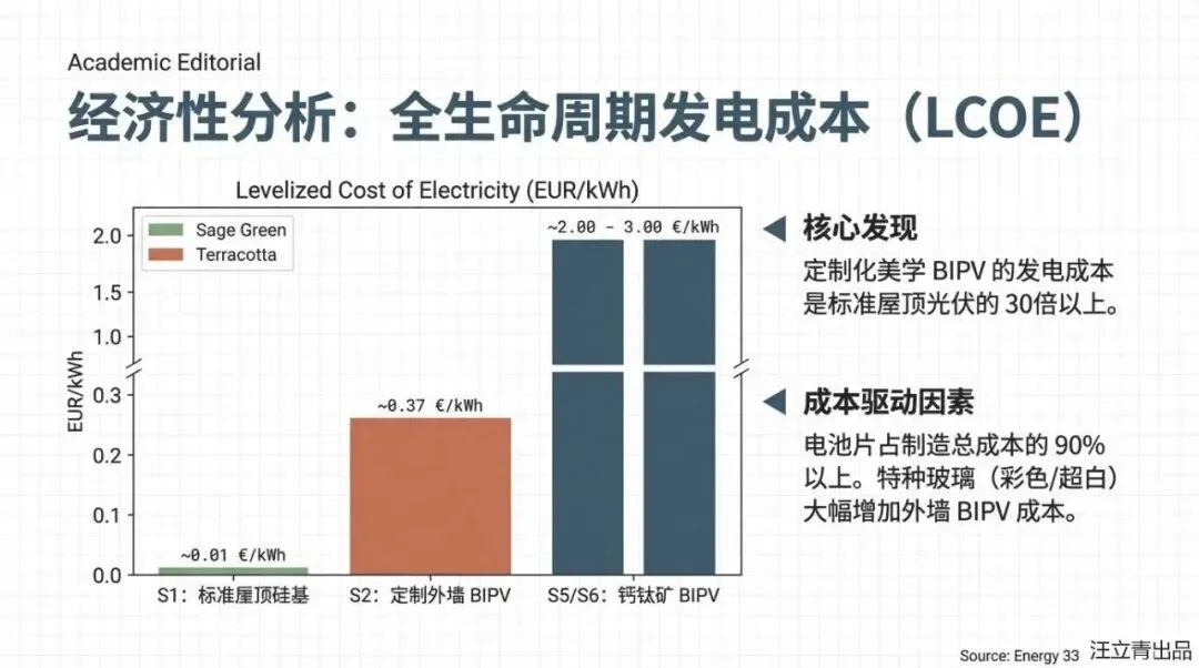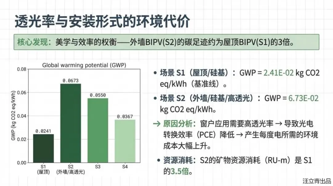 为什么这位“潜力股”现在还不能完全取代“老大哥”呢?报告通过详尽的数据揭露了一个残酷的现实:在追求美观和透明度的过程中,光伏电池不得不牺牲掉一部分转换效率,这意味着如果你想要像普通窗户一样透光的BIPV组件,它的环境影响可能会比普通的屋顶电站高出2.8到3.8倍。更让人扎心的是,目前处于研发初期的钙钛矿电池,其环境足迹竟然是硅电池的1.7到60倍,主要原因就在于它的“脆皮”属性——寿命太短,导致平摊到每一度电上的环境成本和制造费用都变得异常昂贵。目前在意大利的测试中,硅电池产生的每度电成本大约只要0.01欧元,而实验室阶段的钙钛矿电池成本却高得离谱。