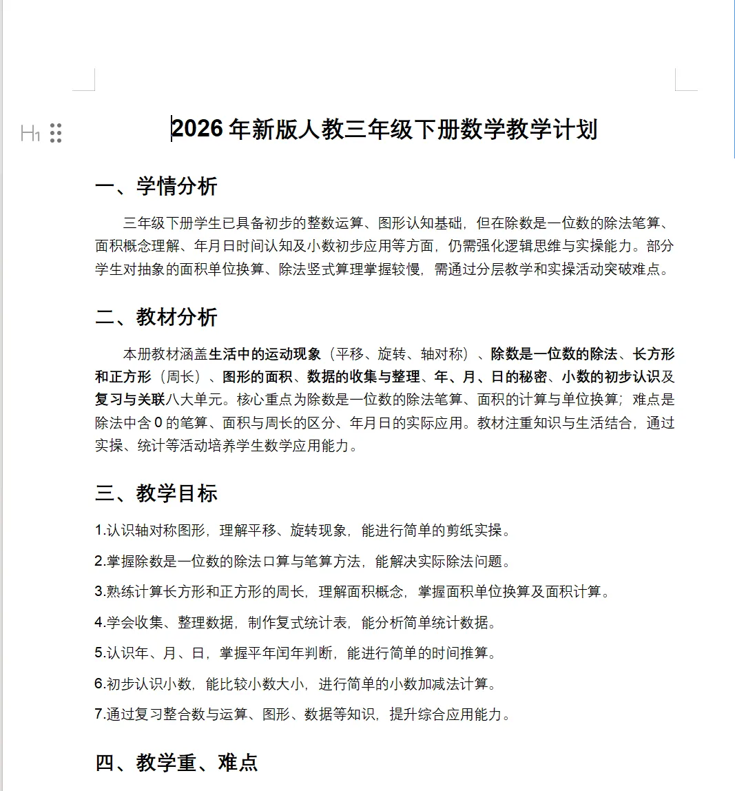 今天这份 【26春人教版三年级下册数学全套教学资源包】 ,就是来给老师们“续命”的——