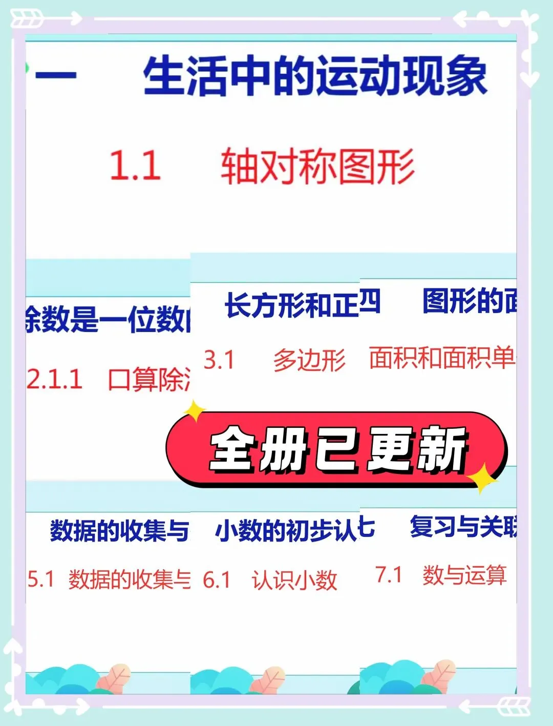 三年级下册数学教材迎来2024版全新修订,2026年春季正式投入使用——知识点重构了、单元顺序调整了、新增了“生活中的运动现象”“数据收集与整理”等实践模块。
