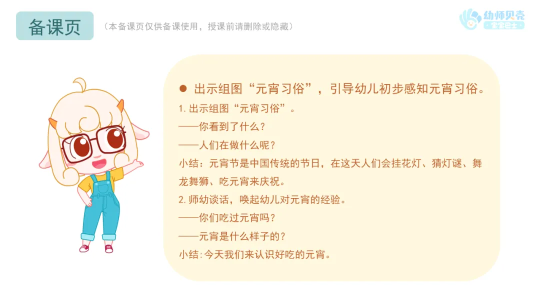 小结:今天我们来认识好吃的元宵。
