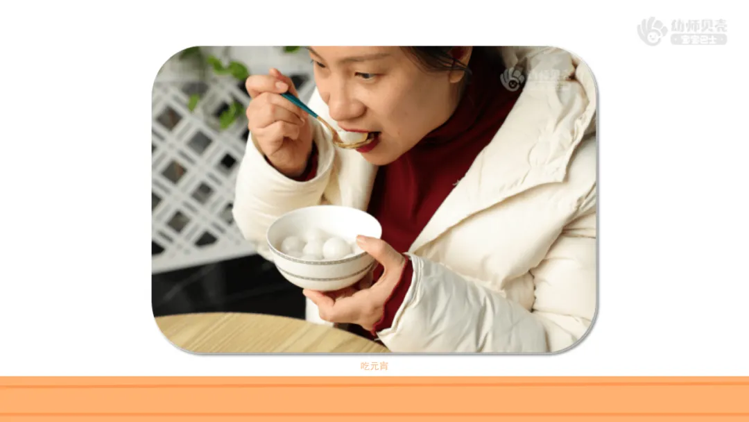 l知道元宵节吃元宵的习俗,感受元宵节喜庆的氛围。