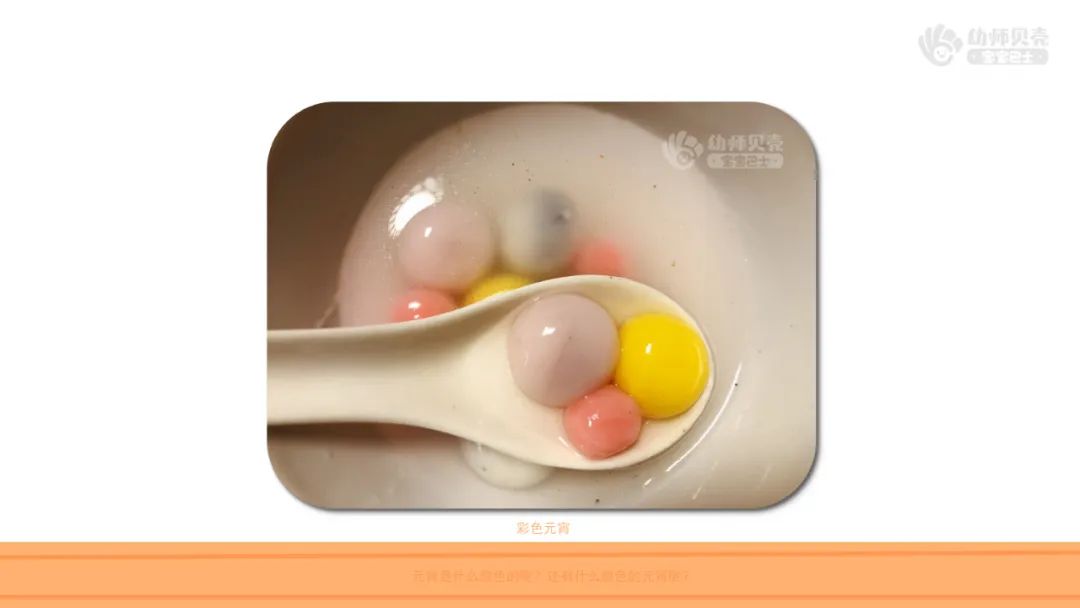 2.出示图片“元宵-颜色”。